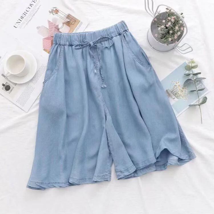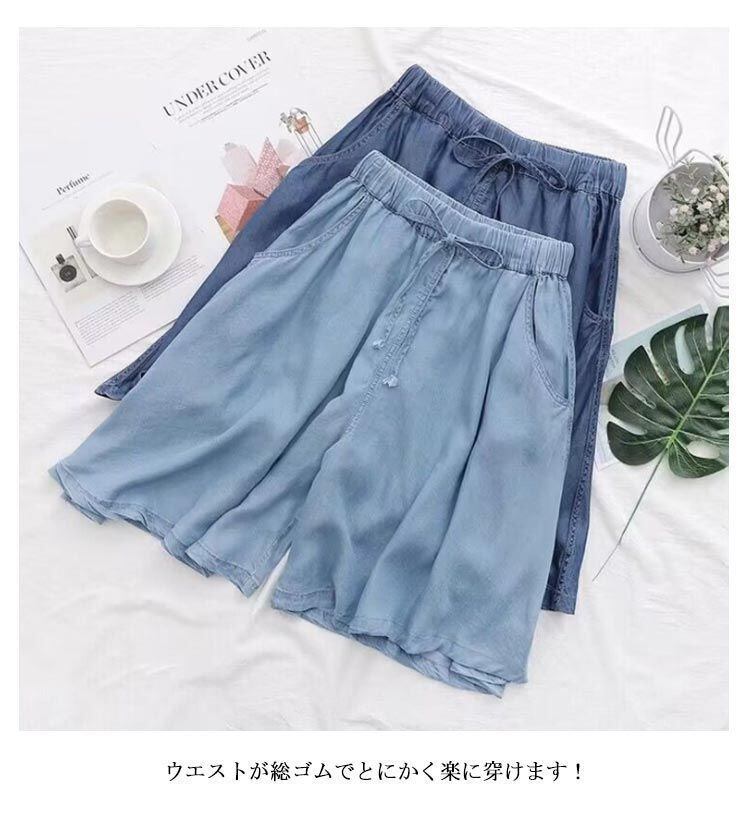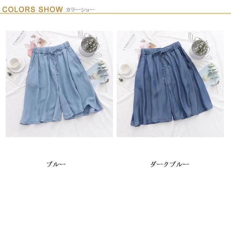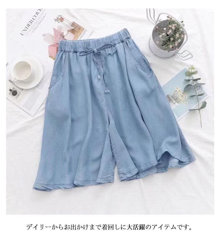 新品 キュロット パンツ デニム 薄手 ガウチョ パンツ レディース ワイドパンツ スカート ひざ丈 スカンツ 接触冷感 5分丈 デニムパンツ スカートパンツ スカート ゆったり ハーフパンツ 春秋 体型カ kkkfyk
