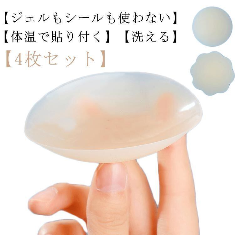 新品 ニップレス 2個セット 4枚入り 新感覚 シリコン 100% 体温で貼り付く 繰り返し使える ジェルもシールも使わない 洗える 肌に優しい シリコンブラ ニプレス かぶれない 敏感肌 ノーブラ ブラジ kkkzjc