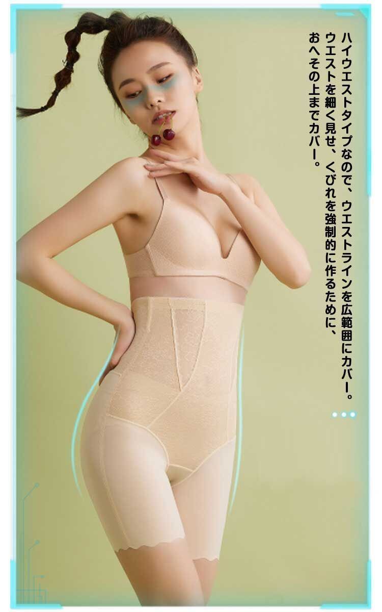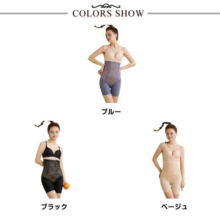 ハイウエストタイプなので、ウエストラインを広範囲にカバー。ウエストを細く見せ、くびれを強制的に作るために、おへその上までカバー。特殊縫製で生地の方向から計算されたネット構造で余分なお肉を包み込むようにシェイプします。