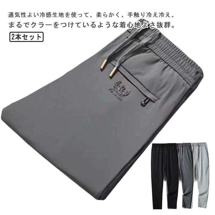 新品 2本セット!イージーパンツ 冷感パンツ メンズ 薄手 ゴルフパンツ アイスシルク 接触冷感 ロングパンツ スキニーパンツ ウエストゴム ジョガー ストレッチ 伸縮 美脚 長ズボン 通気 速乾 スポーツ kkkpen