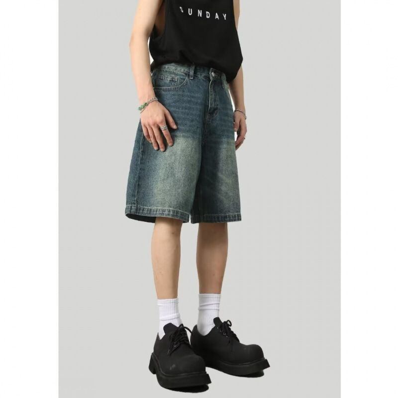 新品 デニムパンツ メンズ ハーフ丈 五分丈 短パン 半ズボン ハーフパンツ ボトムス ハーフデニム ジーンズ ショートパンツ ダメージ シンプル カジュアル ブルー 夏 お兄系 部屋着 kkkfvn