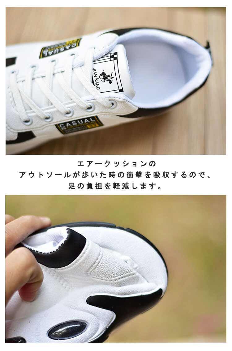 エアークッションのアウトソールが歩いた時の衝撃を吸収するので、足の負担を軽減します。