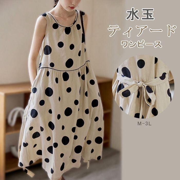 ノースリーブワンピース レディース ロングワンピース マキシ丈 ロング丈 ティアードワンピース ノースリーブ ワンピ 水玉 体型カバー ゆったり ゆるっとワンピース シンプル ロングワンピ かわいい 春 夏 大きいサイズ カジュアル 20代 30代 40代 50代