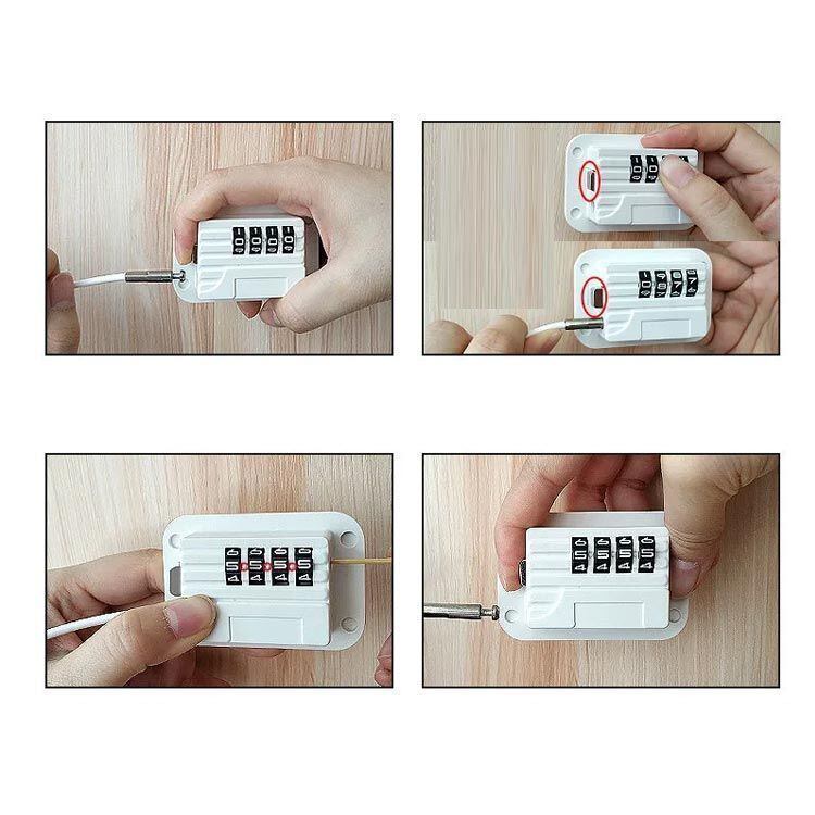 2、パスワードを変更する前に、必ずワイヤー部分をロックに挿入してください。