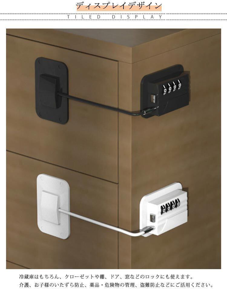 冷蔵庫はもちろん、クローゼットや棚、ドア、窓などのロックにも使えます。