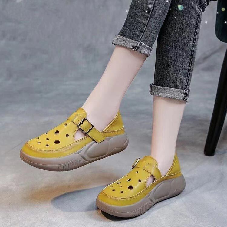 厚底5cmのクラシックヒールはとても快適でトレンディで、足を長く履いて密かに背が高くなり、誰もが驚かれます!レディースのレトロカジュアルシューズは、普段着、ジーンズ、ショートパンツ、スカートなどと合わせることができます。