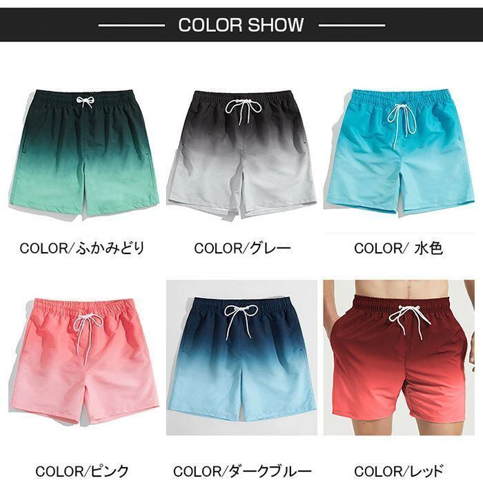 新品 ビーチパンツ メンズ ショートパンツ 水着 海パン サーフショーツ グラデーション 海水パンツ 水陸両用 ハーフパンツ 海水浴 プール ビーチ ウエストゴム kkkzuq