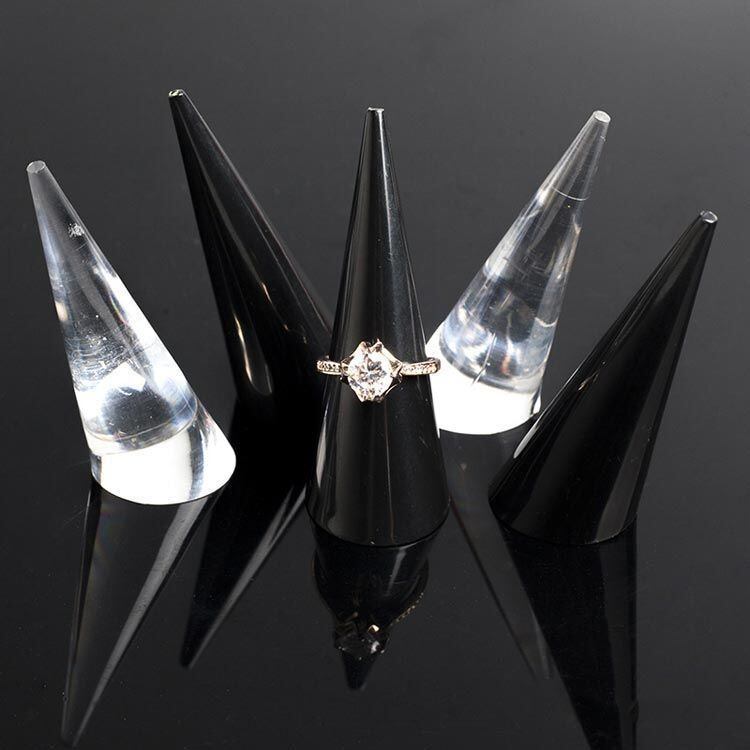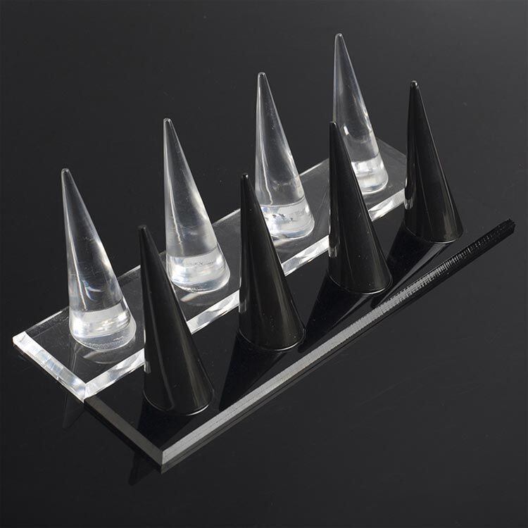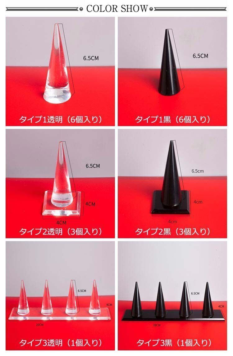 新品 リング差し 4連 ブラック 指輪置き リングスタンド リングホルダー 全3タイプ クリア 円錐 アクリル製 ディスプレイ 空洞なし 透明 黒 指輪の保管 ジュエリー用品 指輪ホルダー 指輪スタンド kkkjmq