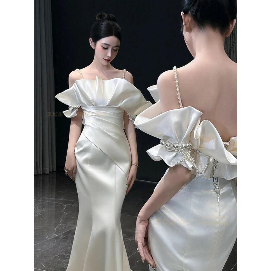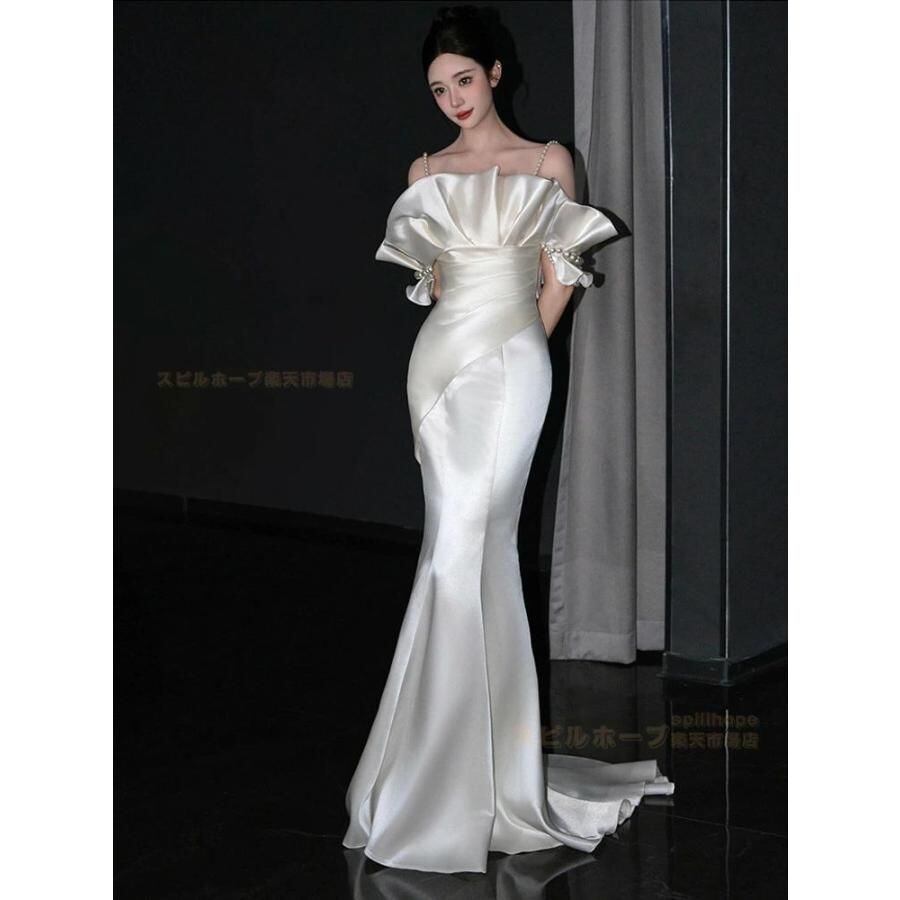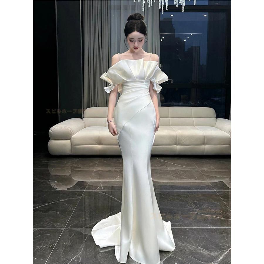 新品 ウェディングドレス マーメイ 前撮り 二次会 ドレス 花嫁 結婚式 後撮り オフショルダー ワンピース レディース Aライン kkktfb