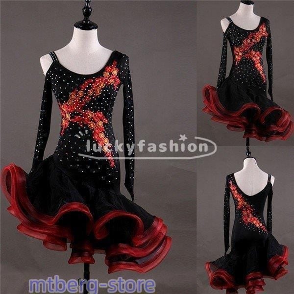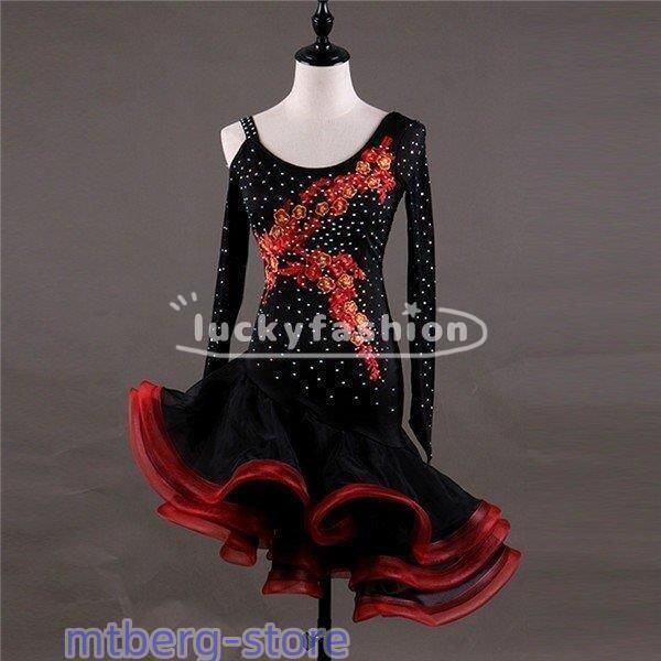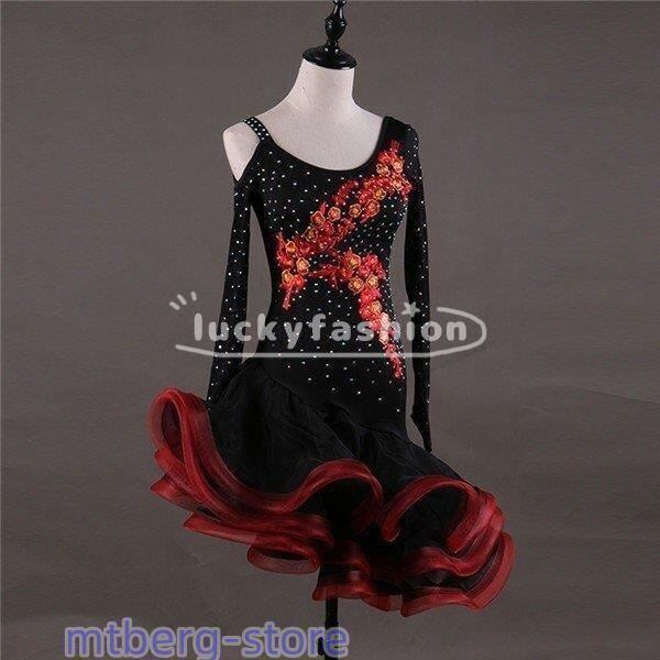 ラテン衣装 社交ダンス 社交ダンス ラテンドレス ワンピース 黒 赤 衣装 キャバ ダンス衣装 練習服 スタンダード ワルツ ラテンダンス 社交ダンス ラテン ドレス ラテンドレス 競技着 練習着 演出用 舞台・発表会ドレス