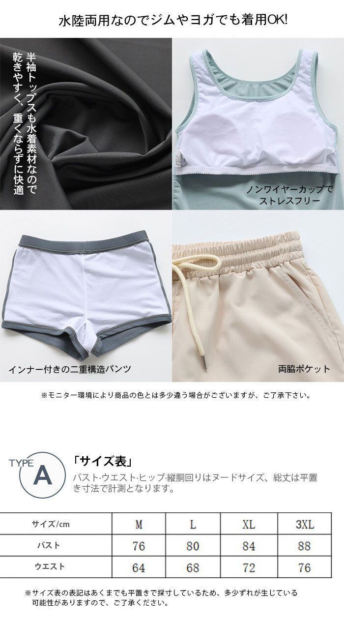 水着 レディース 体型カバー 水着セット Tシャツ 半袖 ラッシュガード レディース ショートパンツ セパレート カバーアップ オーバーTシャツ uvカット UPF50+ 袖付き 上下セット 大きいサイズ 露出控え ノンワイヤー ママ ぽっちゃり 旅行 aikai04