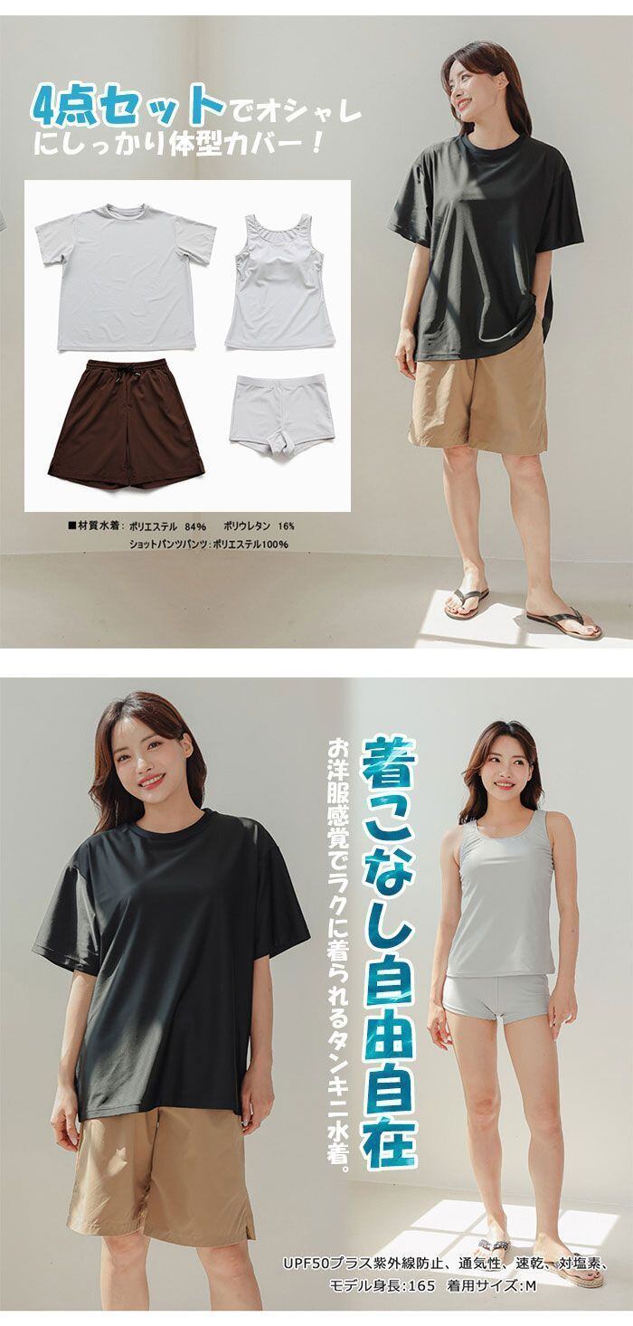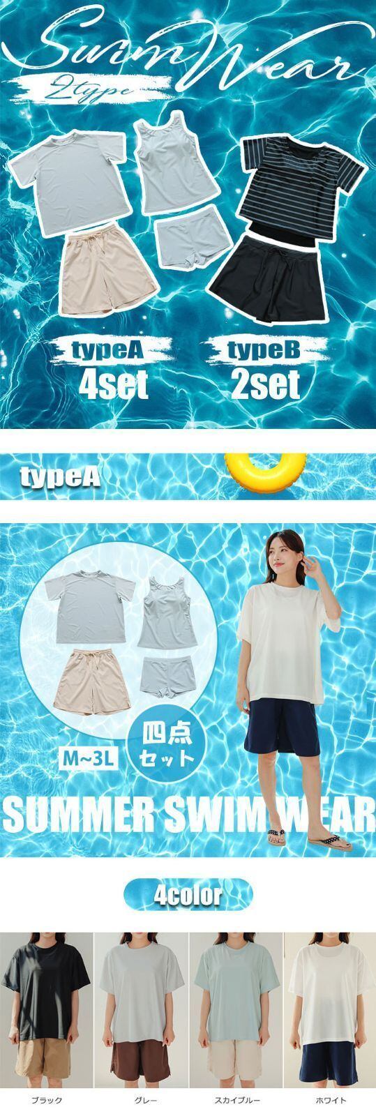 セット内容 タイプA:4点セット:オーバーサイズTシャツ、タンキニ上、ショーツ、ショートパンツ; タイプA:2点セット:オーバーTシャツ +ハーフパンツ