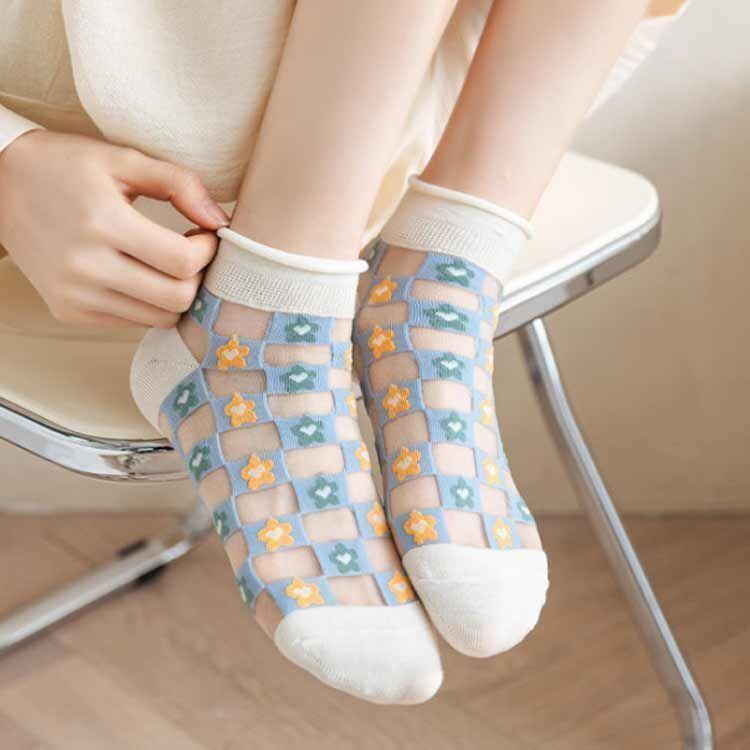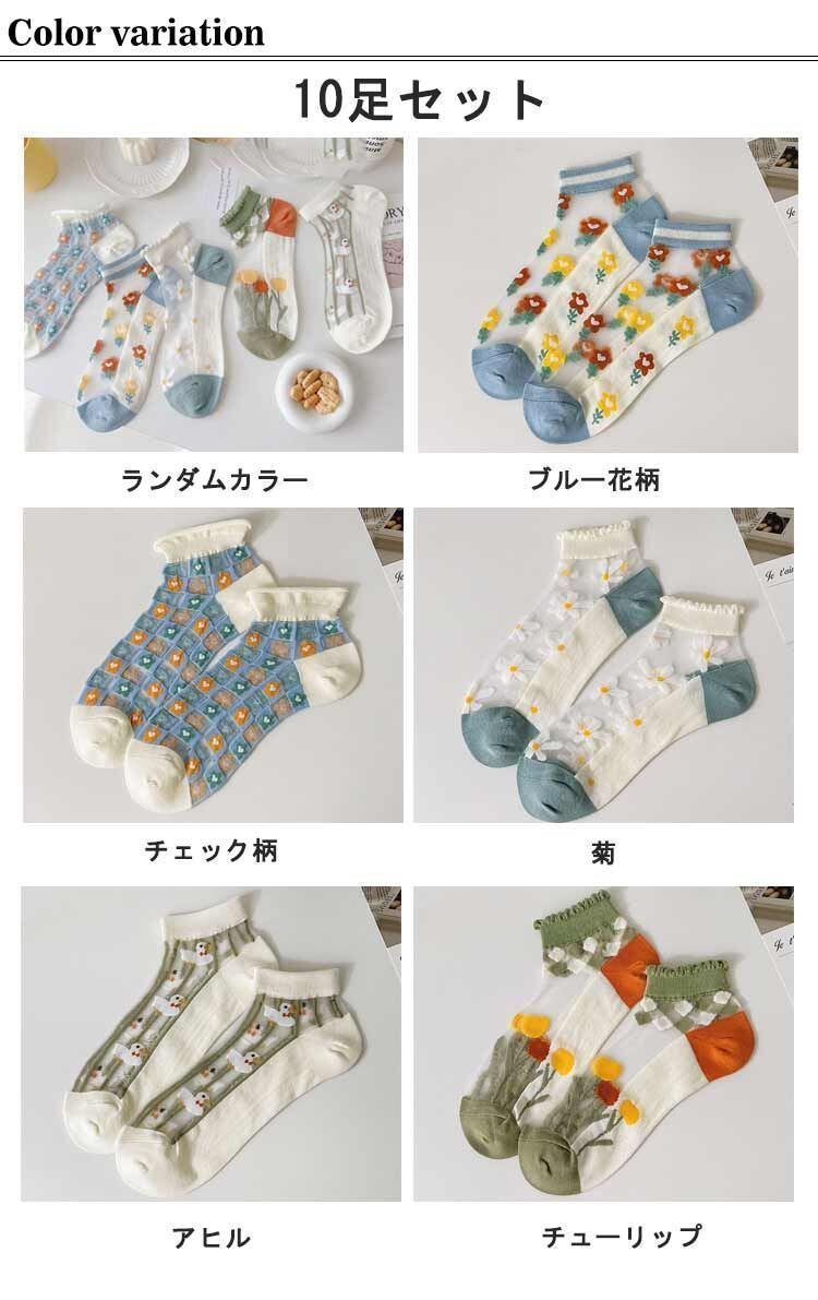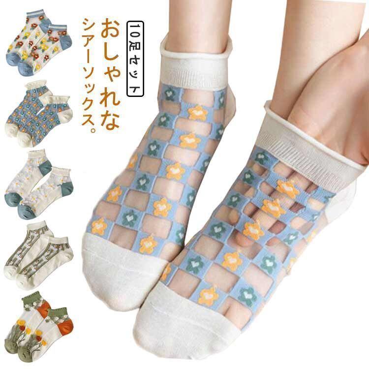 新品 透け感 綿 靴下 ショートソックス 刺繍柄 10足セット 花柄ソックス ソックス くつした シースルーソックス くつ下 レディース 通気性 コットン 滑り止め 夏ソックス カバーソックス kkkpig