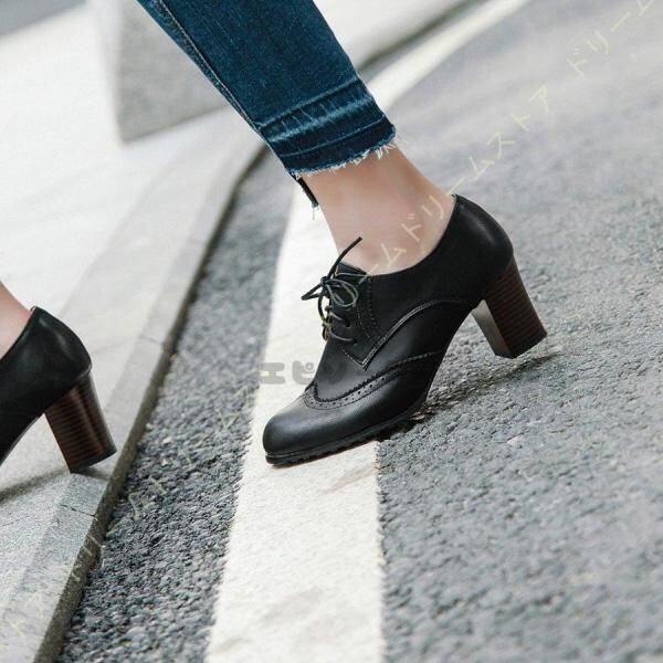 新品 オックスフォード ブーティ マニッシュシューズ ハイヒール パンプス レディース 大きいサイズ オックスフォードシューズ 歩きやすい おじ靴 レースアップ kkkrxd