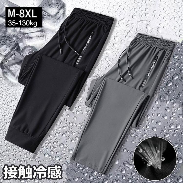 新品 サマーパンツ アイスシルク 長ズボン 接触冷感 メンズ パンツ 夏 ジョガーパンツ ストレッチパンツ 速乾 軽量 アクティブパンツ 大きいサイズ ジム フィットネス kkkaqq