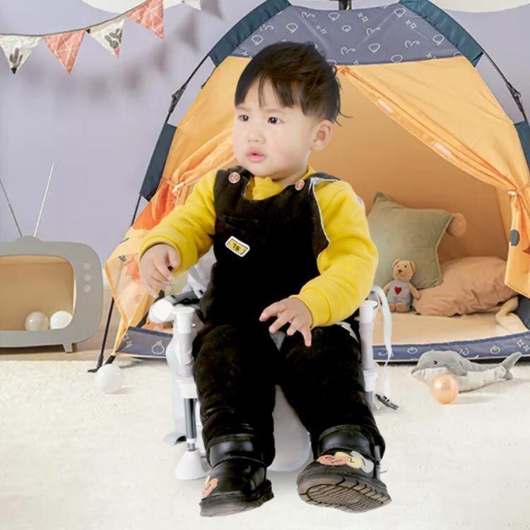コンパクトに折りたためて、持ち運びに便利な折りたたみ式のベビーチェア。