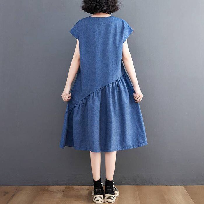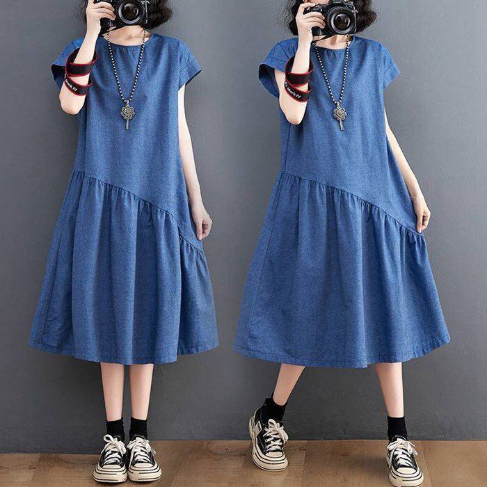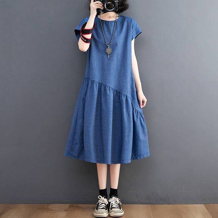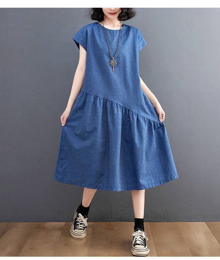 新品 デニムワンピース レディース ワンピース 夏 レディース 半袖 薄手 デニム ロングワンピース 柔らか デニム ミモレワンピース 大きいサイズ ミモレ丈 キレイめ カジュアル ゆったり 体型カバー 着痩せ kkkdrl