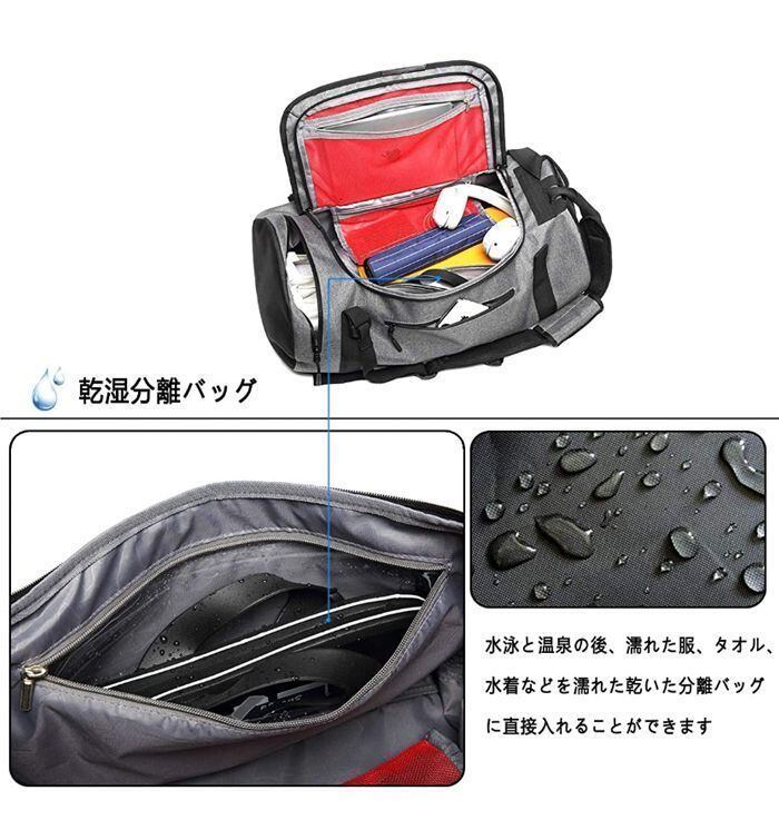 品番:chenfengsy01 素材:ポリエステル カラー:ブラック、グレー サイズ:スポーツバッグ 50L 長さ56cm x幅28cm x高さ28cm / 重量:0.91kg 注意事項 ※お客様のモニター環境により実物の色合いと若干お色目が異なる場合がございます。 ※ご使用後、海水やプールの塩素を落とす為、早めの水洗いをおすすめします。 ※濡れた状態でビニール袋に入れて密閉すると、変色や色落ちの可能性があります。 ※着用・保管頂きます際には他のものとの摩擦などにより色移りや傷になる場合が 御座いますのでご注意ください。 ※◆お洗濯時 ・漂白剤、洗濯機、乾燥機のご使用はお避けください。 ・洗濯は真水で手洗いし、陰干しで自然乾燥してください。