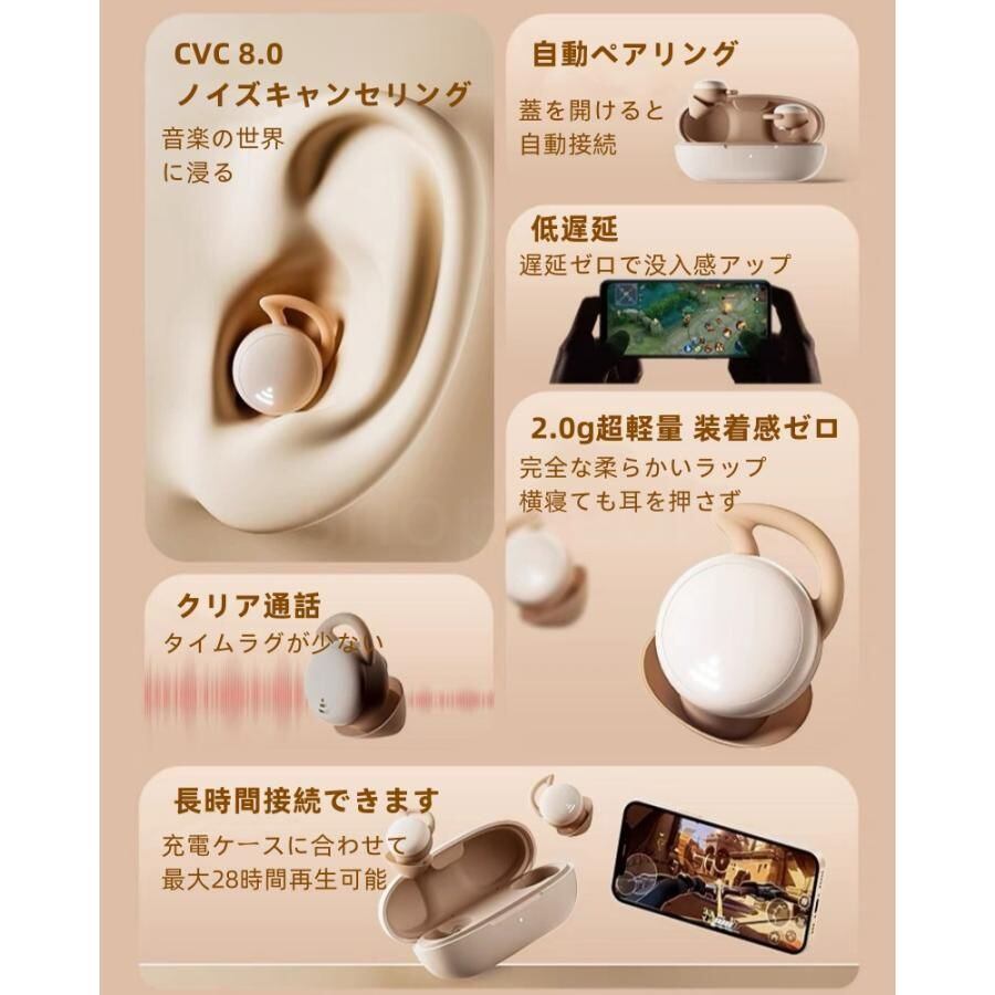 新品 ワイヤレスイヤホン 寝ながらイヤホン Bluetooth5.3 2g超軽量 小型 ブルートゥース 高音質 Hi-Fi 超軽量 防塵 左右分離 CVCノイズキャンセリング コンパクト kkkkvr