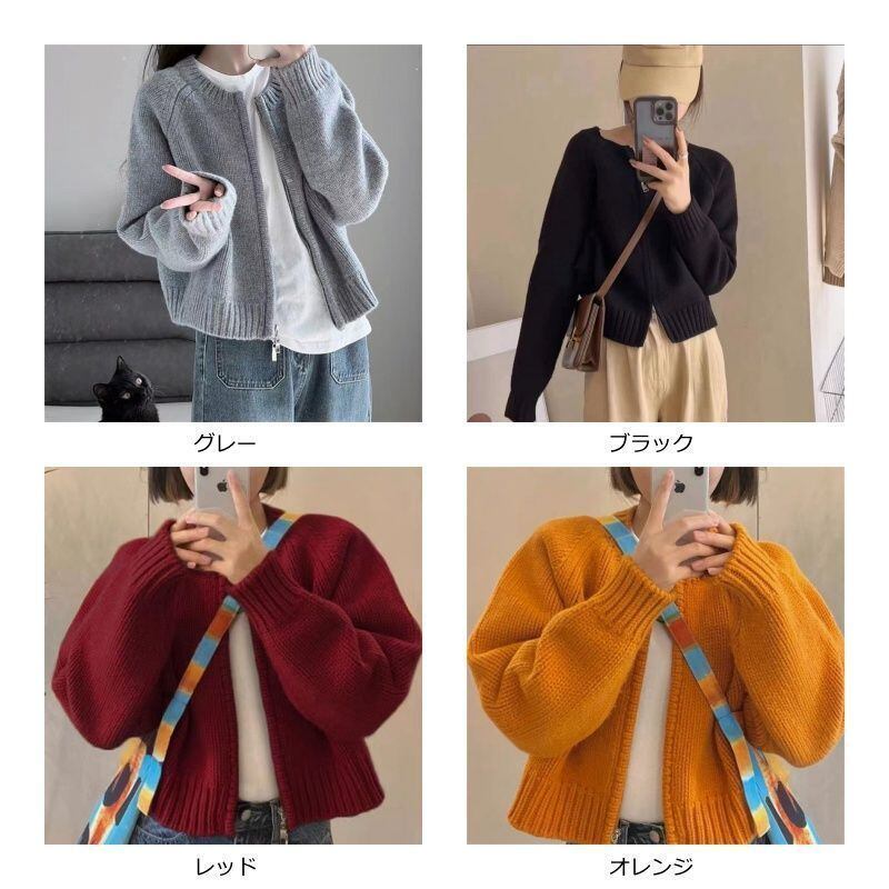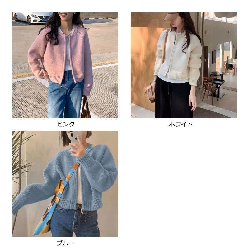 新品 アウター レディース カーディガン ニットセーター トップス 秋冬 長袖 ラウンドネック ニット 厚手 ファスナー ダブルジップ ショート カジュアル ファスナー開閉 kkkrta