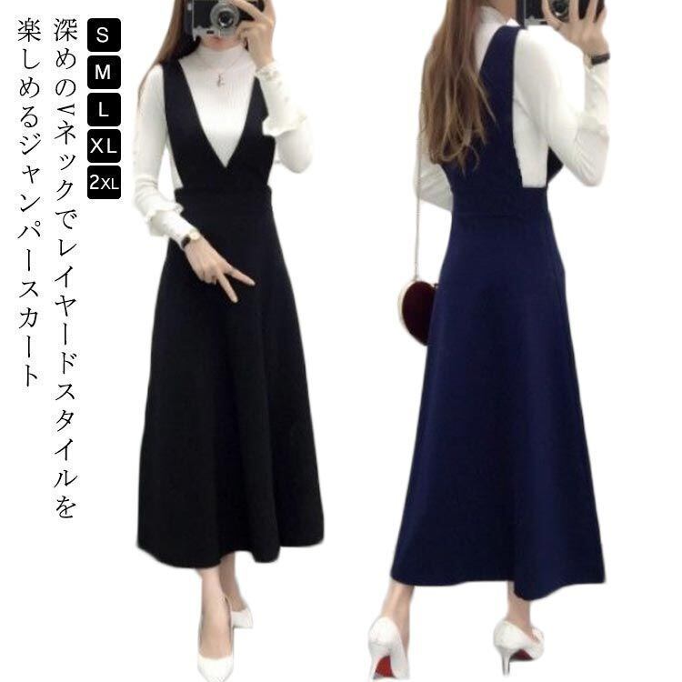 新品 ジャンパースカート 大人 サロペット 深Vネック ワンピース ロング ジャンスカ レディース マキシ丈 ノースリーブ オールインワン 春夏 秋冬 大人 女性 着?せ フレア きれいめ レイヤード ブラ kkkrue