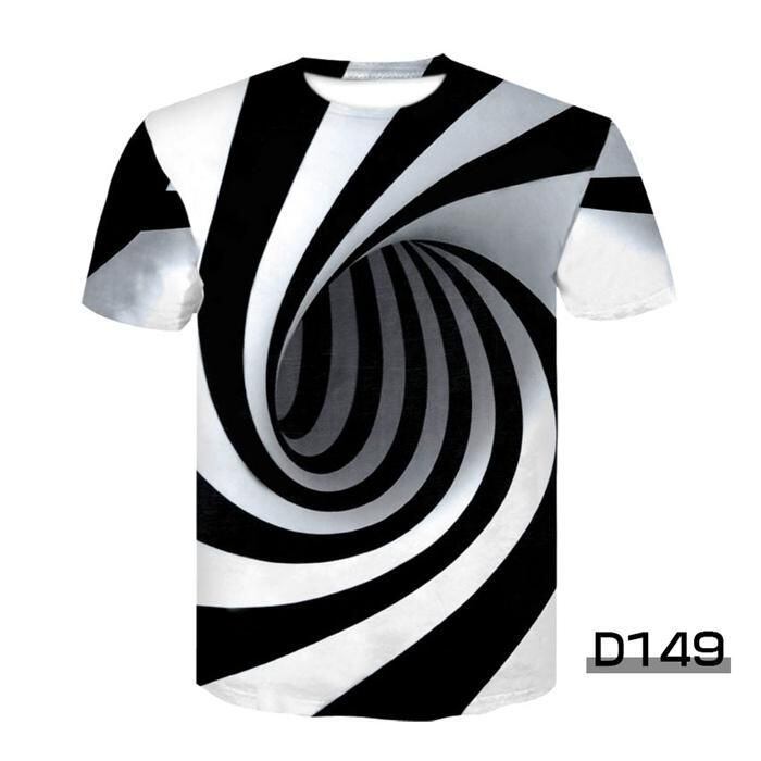 新品 半袖Tシャツ おもしろ 3Dプリント トリックアート メンズ 渦 オプティカルイリュージョン メンズTシャツ クルーネック カジュアル kkksft
