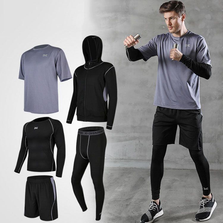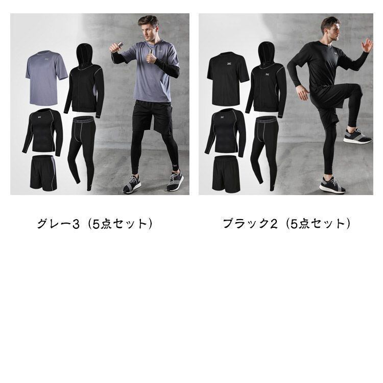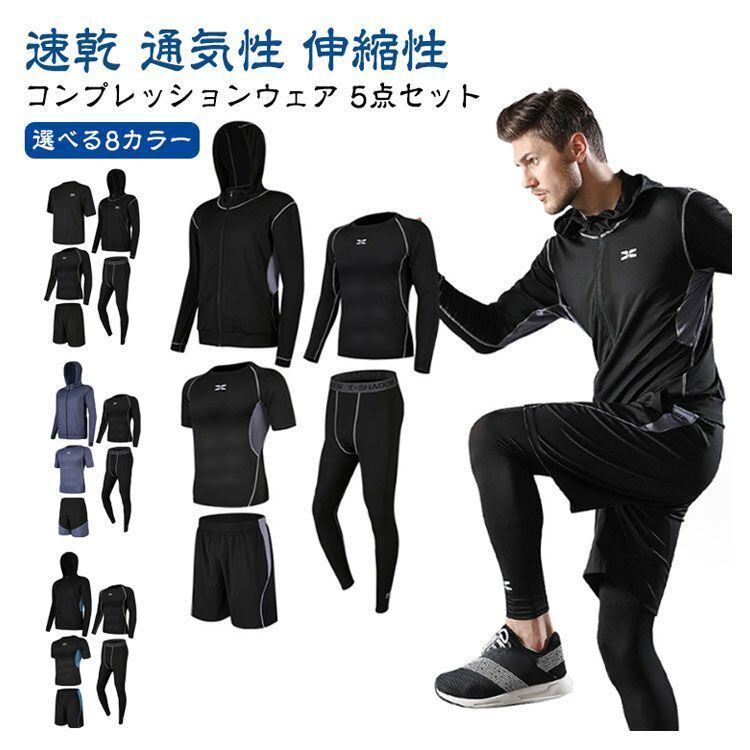 新品 スポーツウェア 5点セット コンプレッションウェア メンズスポーツウェア ジム ランニングウェア トレーニングウェア 吸汗 速乾 通気性 伸縮性 メンズ 上下 長袖 半袖 パーカー ショート kkkweu