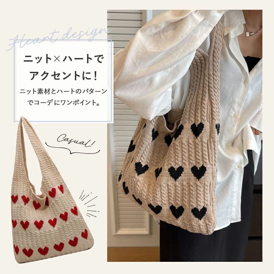 新品 トートバッグ レディース 大容量 A4 大きめ ニットバッグ オールシーズン バッグ ニット マルシェバッグ ハート クロシェ編み 編み ハンドバッグ 柄 縦型 ニット生地 A4サイズ 収納可能 軽量 かぎ針 韓国 かばん 鞄 kkkktp