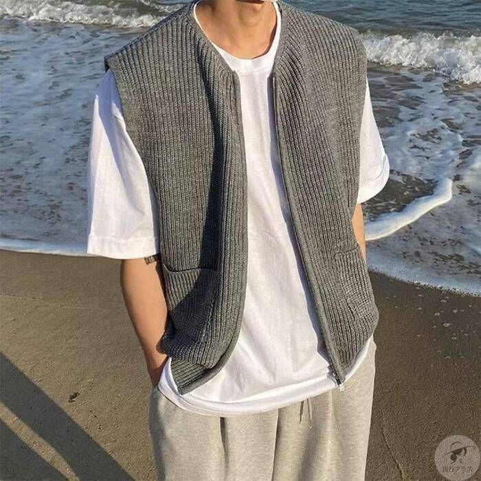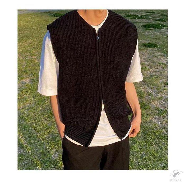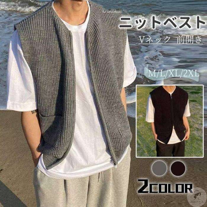 新品 ニットベスト メンズ チョッキ 紳士服 ファスナー Vネック 前開き セーター トップス ビジネス オフィス 春夏秋 きれいめ おしゃれ 着痩せ kkkxyv