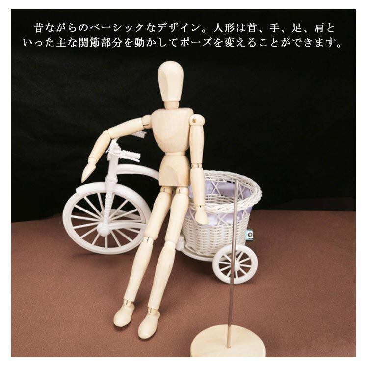 昔ながらのなデザイン。人形は首、手、足、肩といった主な関節部分を動かしてポーズを変えることができます。ハンドマネキンも、それぞれの関節部分を動かすことが可能。これからデッサンを始める人にちょうどよい3点セットです。