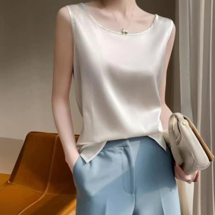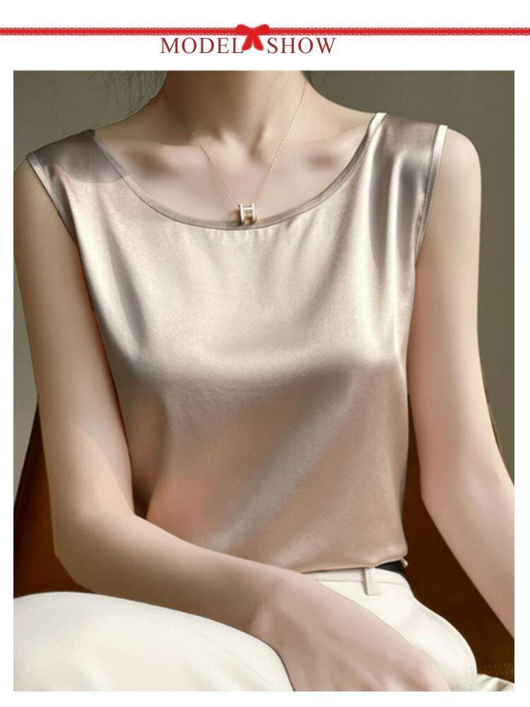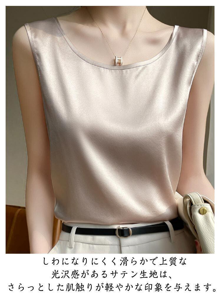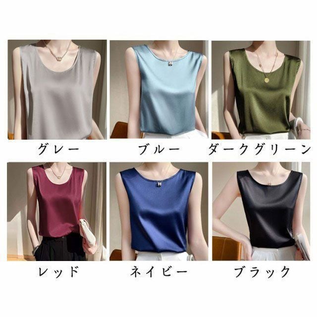 新品 シルク調 タンクトップ ラウンドネック レディース サテン ブラウス 大きいサイズ ショート丈 ノースリーブ トップス インナー 上品 重ね着 肌着 光沢感 ツルツル 透けない ブラ紐隠し 薄手 ゆっ kkkysu