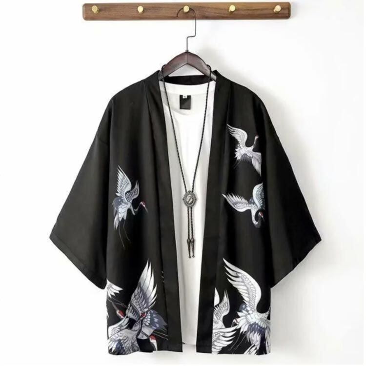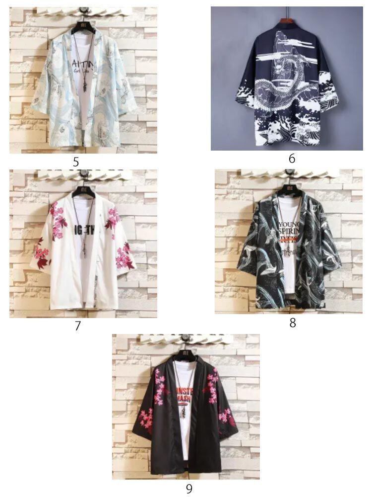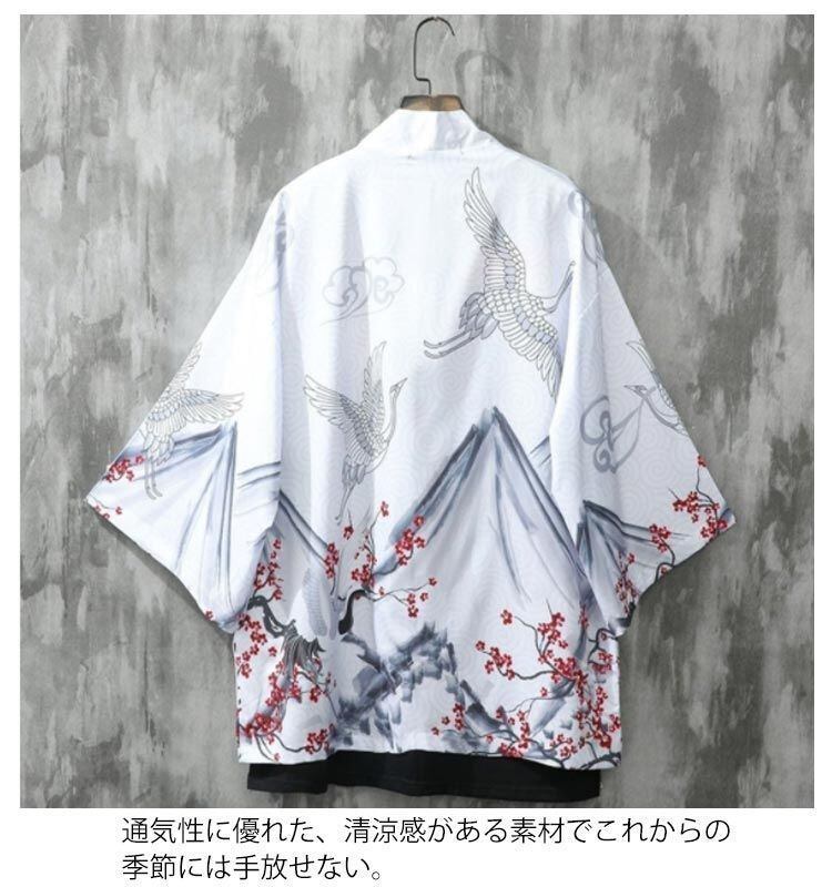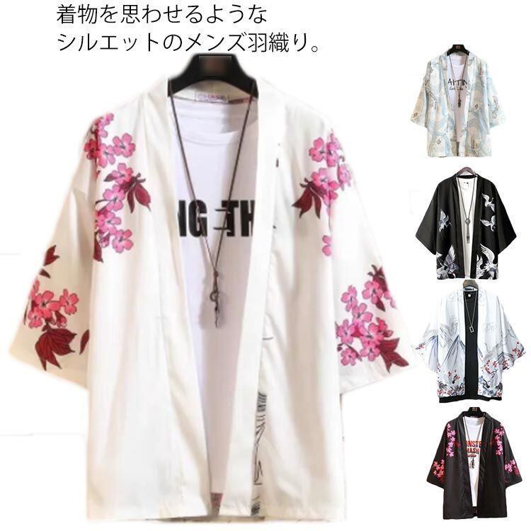 新品 カーディガン メンズ 着物 浴衣 羽織 夏用 カーディガン 甚平風 七分袖 前開き はおり 男性用 和式 羽織 和装 ゆったり トップス アウター 総柄 桜 竜 サマー火大会 コスプレ kkkbic