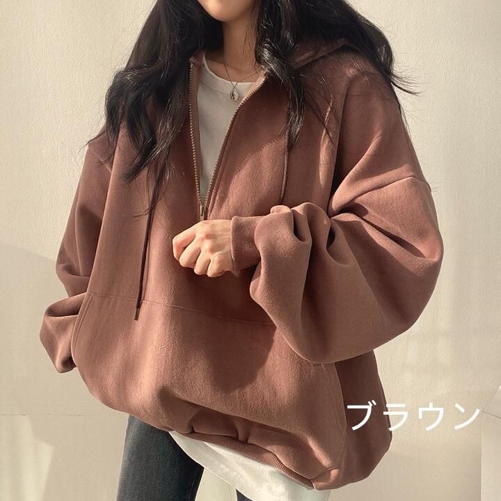 新品 パーカー レディース 秋冬 裏起毛 フード付き プルオーバー 暖かい トップス 長袖 アウター インナー 裏起毛なし 裏起毛あり 裏フリース 春秋 ハーフジップ kkkqiy