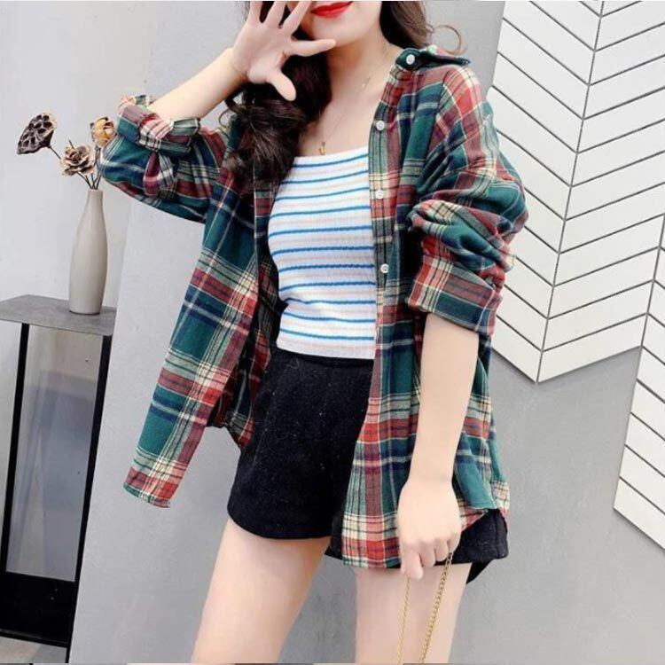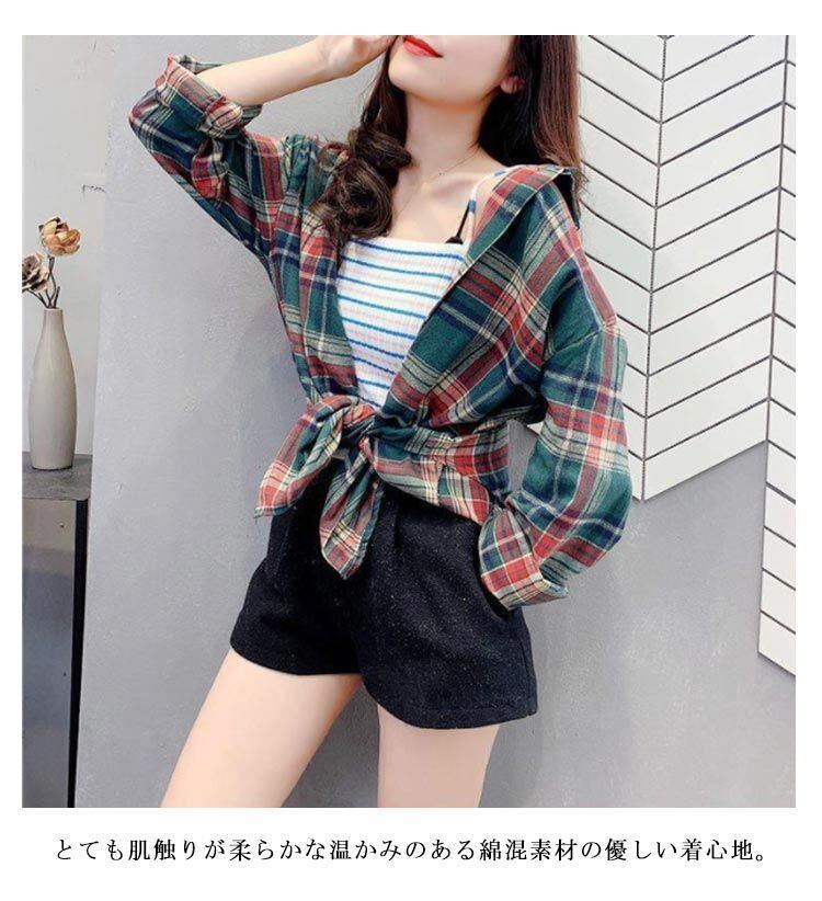 新品 羽織り チェックシャツ レディース グレンチェック柄 カジュアルシャツ シャツ ブラウス アウター 長袖 チェック柄 ロング 春 秋 おしゃれ kkkbaq