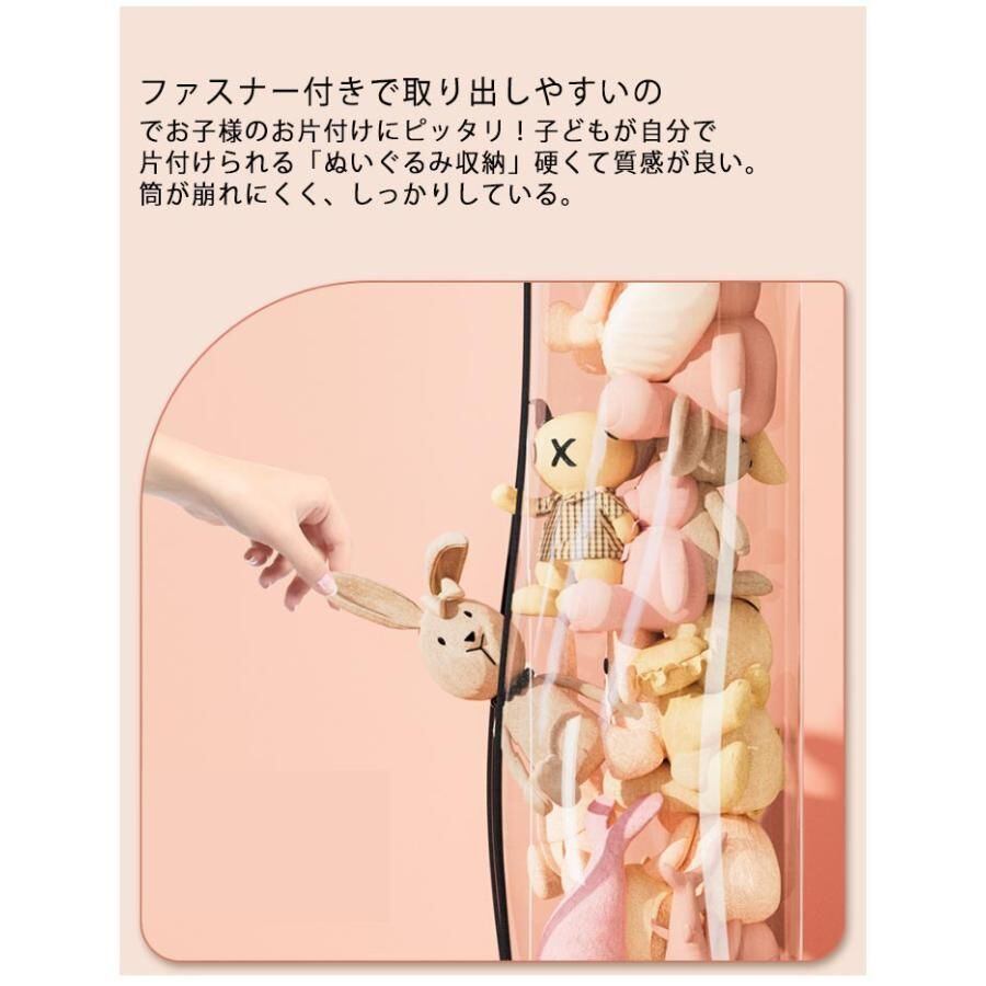 新品 ぬいぐるみ収納 取り出しやすい ファスナー 透明円柱のぬいぐるみ収納ケース ぬいぐるみ収納桶 おもちゃ収納ボックス 円柱形 蓋付き 収納チューブ 収納 kkklan