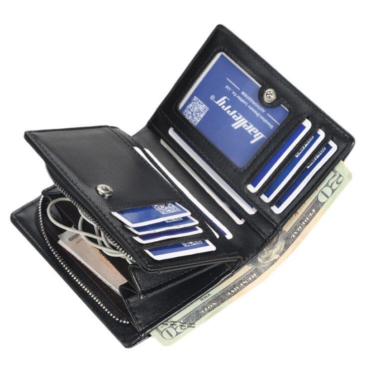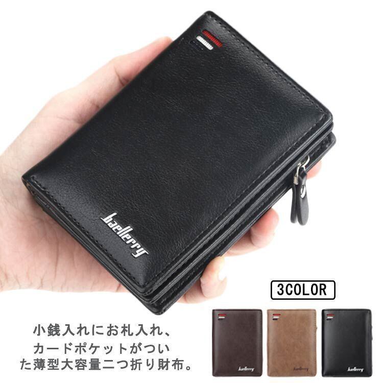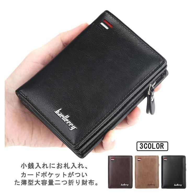 新品 財布 二つ折り メンズ 革財布 二つ折 オシャレ カード 小銭入れ 札入れ 大容量 おしゃれ スキミング防止 機能性 黒 軽量 コンパクト シンプル 男子 チャック 使いやすい 定期券 レザー 合成皮 kkkhhn
