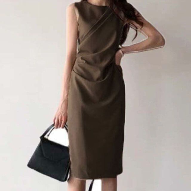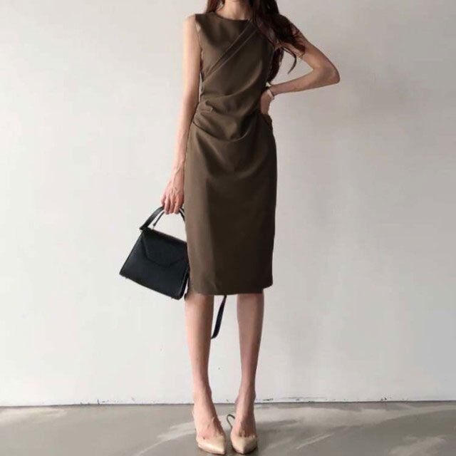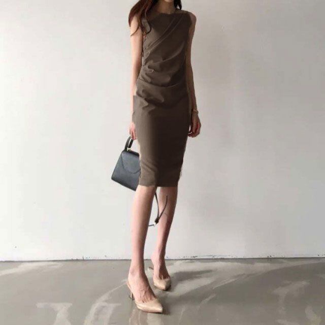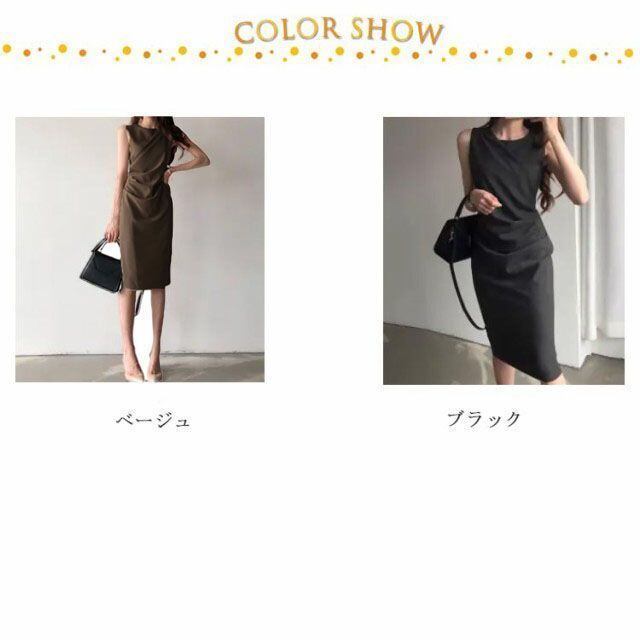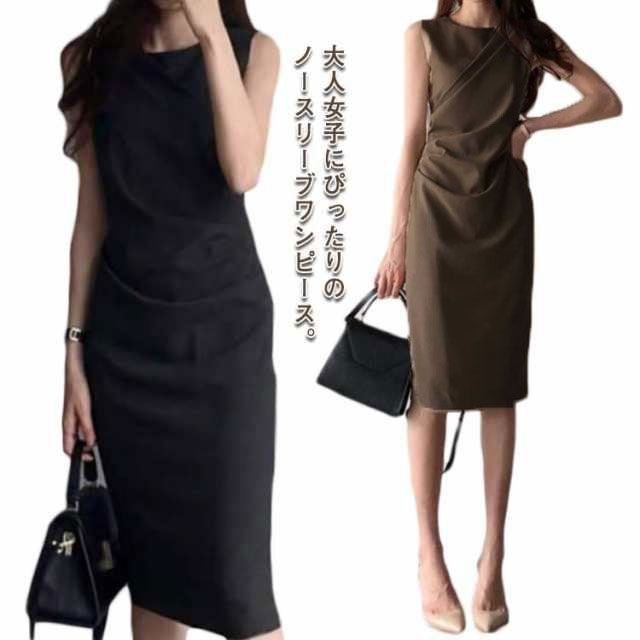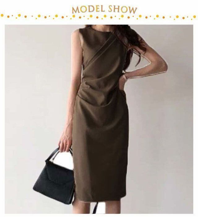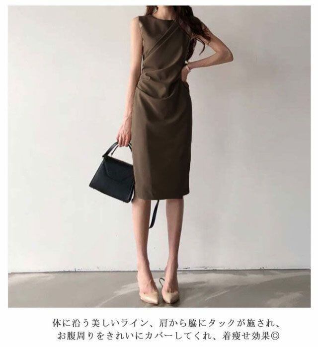 新品 ワンピース タイト ノースリーブ ワンピース 膝丈 細見え タック 体型カバー セクシー レディース オフィスカジュアル フォーマル エレガント 上品 大人 きれいめ 20代 30代 40代 kkkoxo