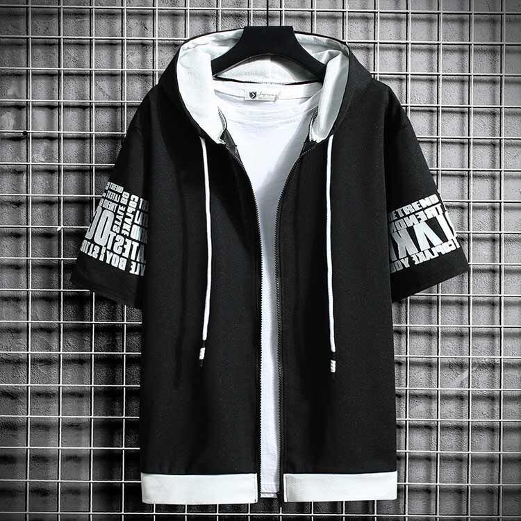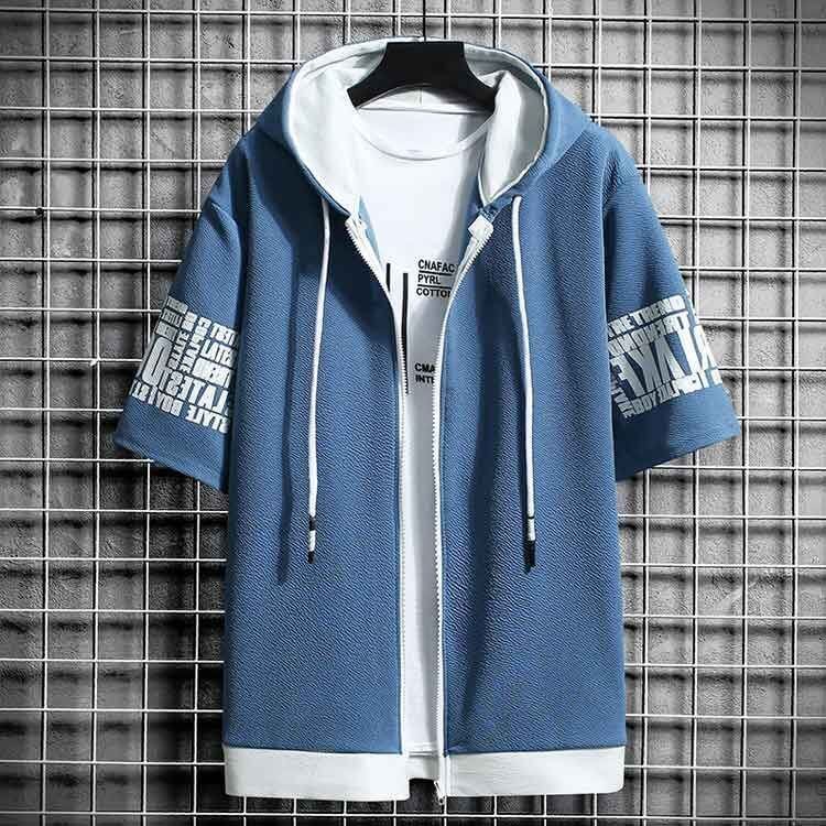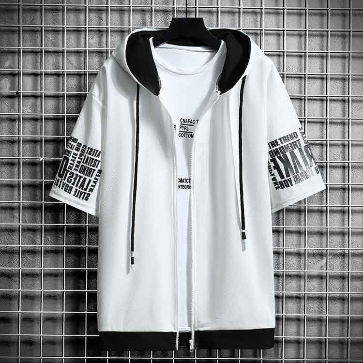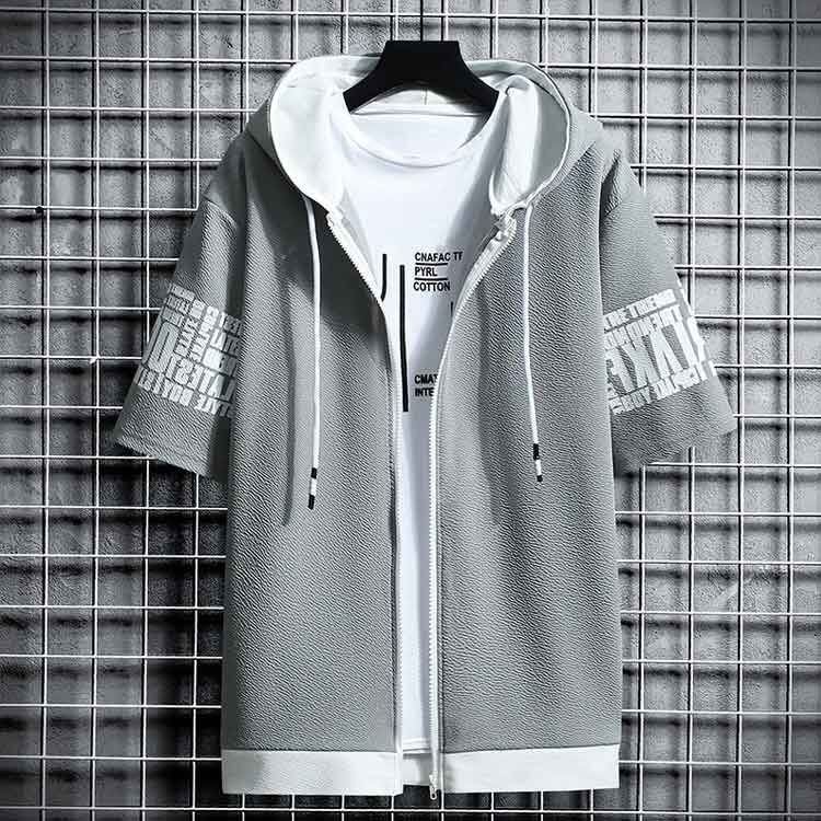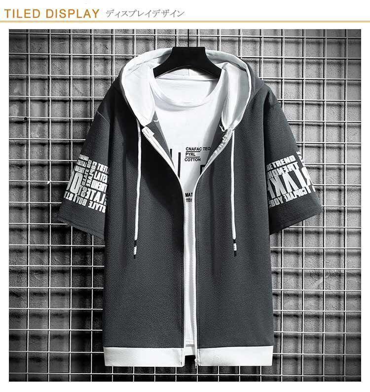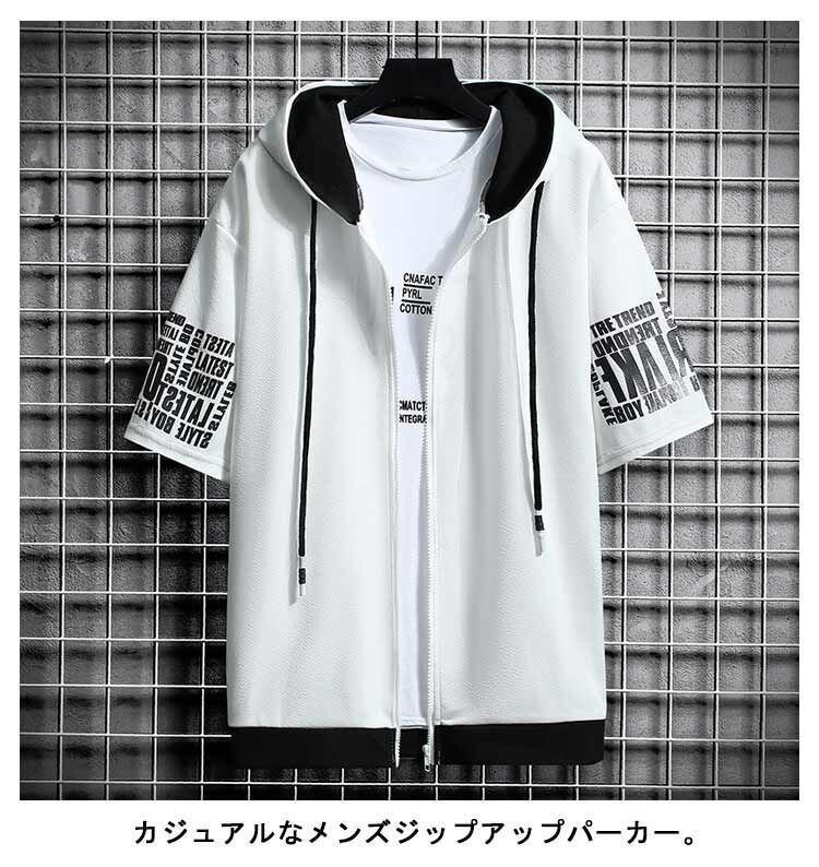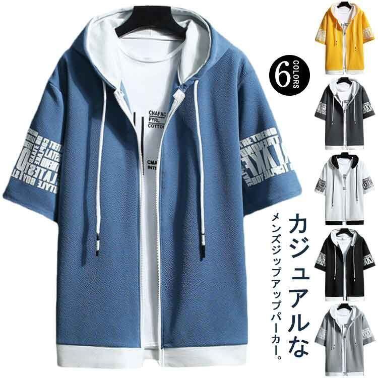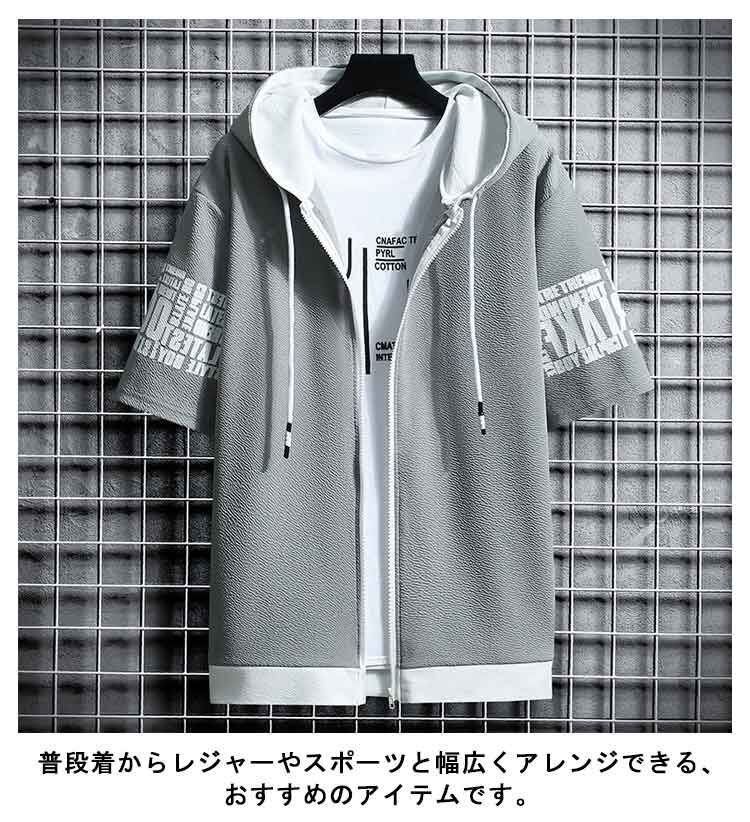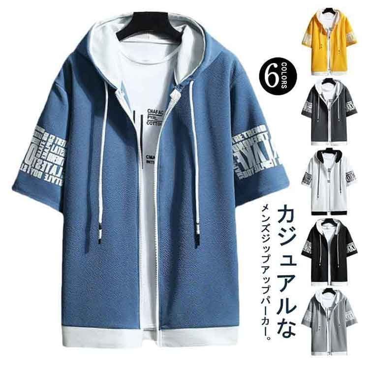 新品 メンズ パーカー スウェットパーカー 春夏 夏 半袖 フード付き 前開き トップス プリント トレーナー おしゃれ カジュアル 大きいサイズ 薄手 メンズファッション パーカートップス Tシャツ メン kkkrxs