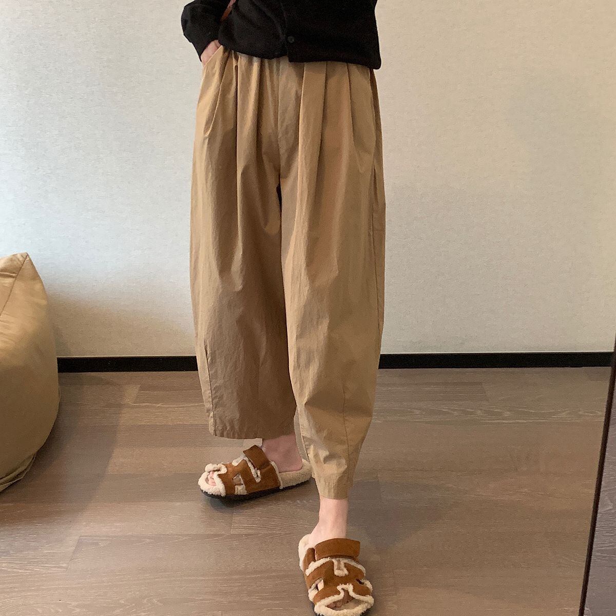 新品 サルエルパンツ バルーンパンツ リネン パンツ レディース カーブパンツ 春 秋 夏 綿麻 ゆったり 薄手 楽チン イージーパンツ きれいめ クロップドパンツ ウエストゴム テーパードパンツ 無地 カジュアル kkkkvb