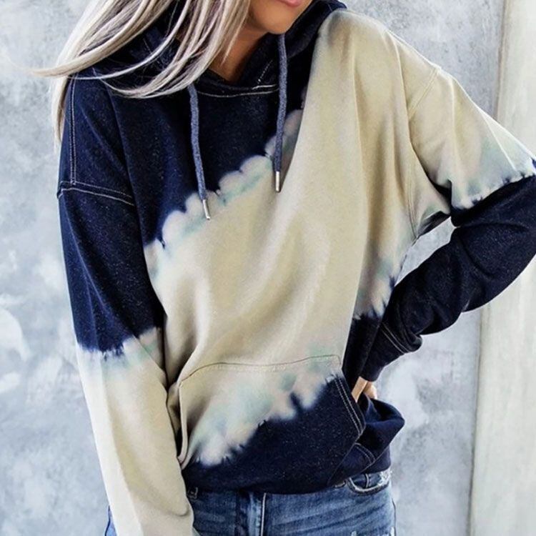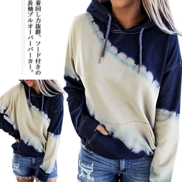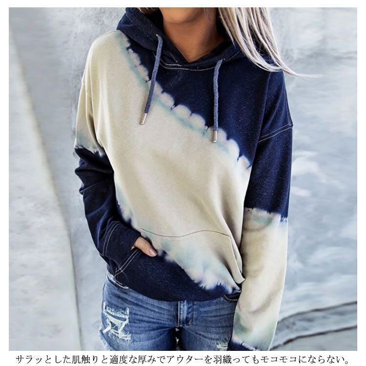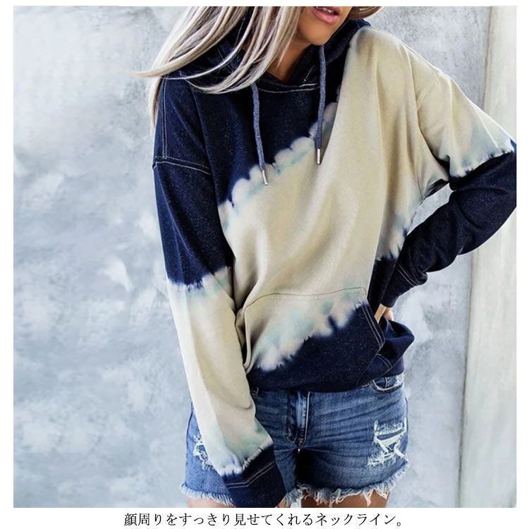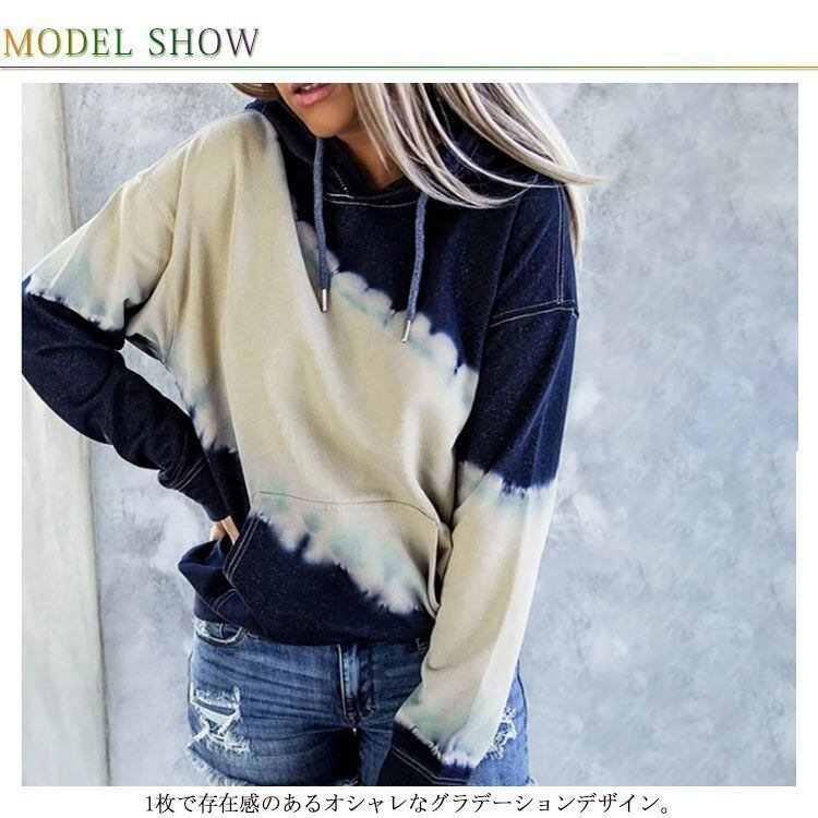 新品 スウェット パーカー トップス レディース プルオーバー フーディー フード付き ドロスト 長袖 無地 グラデーション タイダイ染め 切り替え ドロップショルダー ポケット付き カジュアル kkkjox