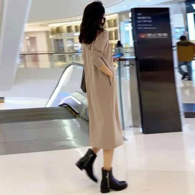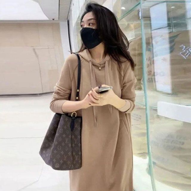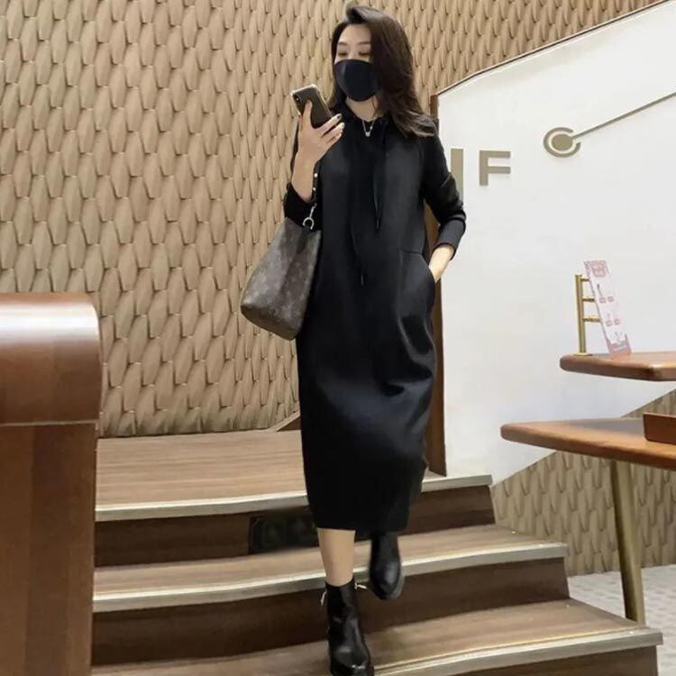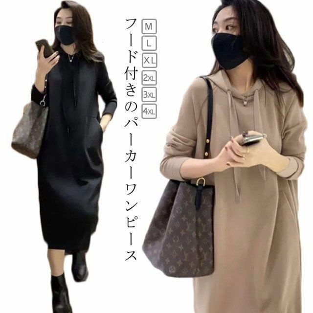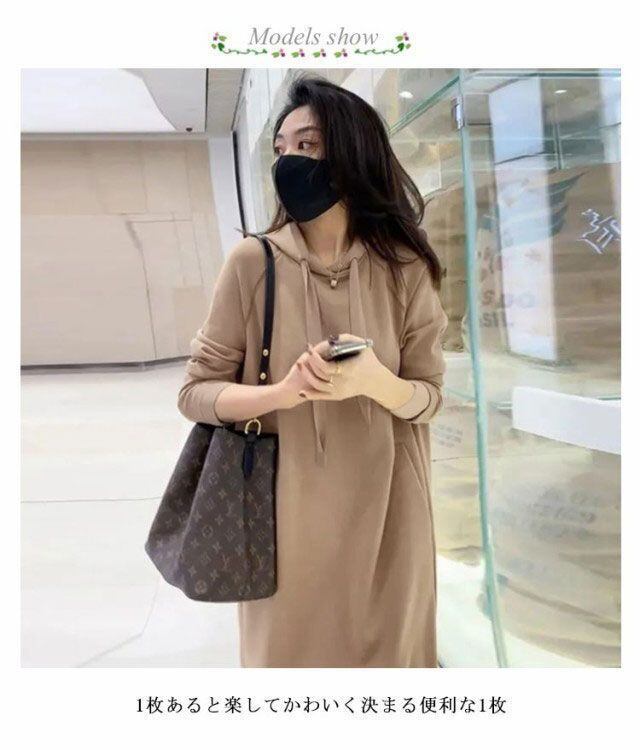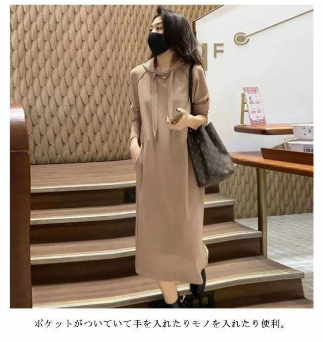 新品 パーカーワンピース 膝丈 トレーナー パーカーワンピース ポケット付き パーカーワンピ フード付き スウェット 長袖 プルオーバー 体型カバー カジュアル 春 kkkzjk