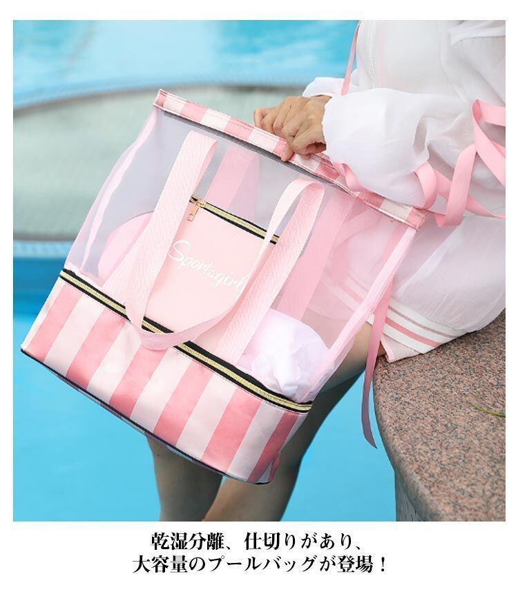 新品 プールバッグ ビーチバッグ 女の子 女児 子供 小学生 幼稚園 保育園 プール バッグ スイムバッグ 大容量 2層式 乾湿分離 子供用 スイミングバッグ 水泳 スイミング ビニールバッグ プールバック kkkuwd