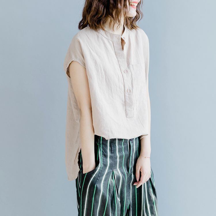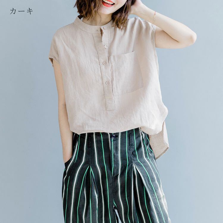 ブラウス リネン シャツ レディース 半袖 夏 サイドスリットブラウス スタンドカラー リネンシャツ トップス 涼しい 薄手 ゆったり 柔らかい 可愛い 大人 シンプル カジュアル ホワイト 白 ベージュchaoliu401