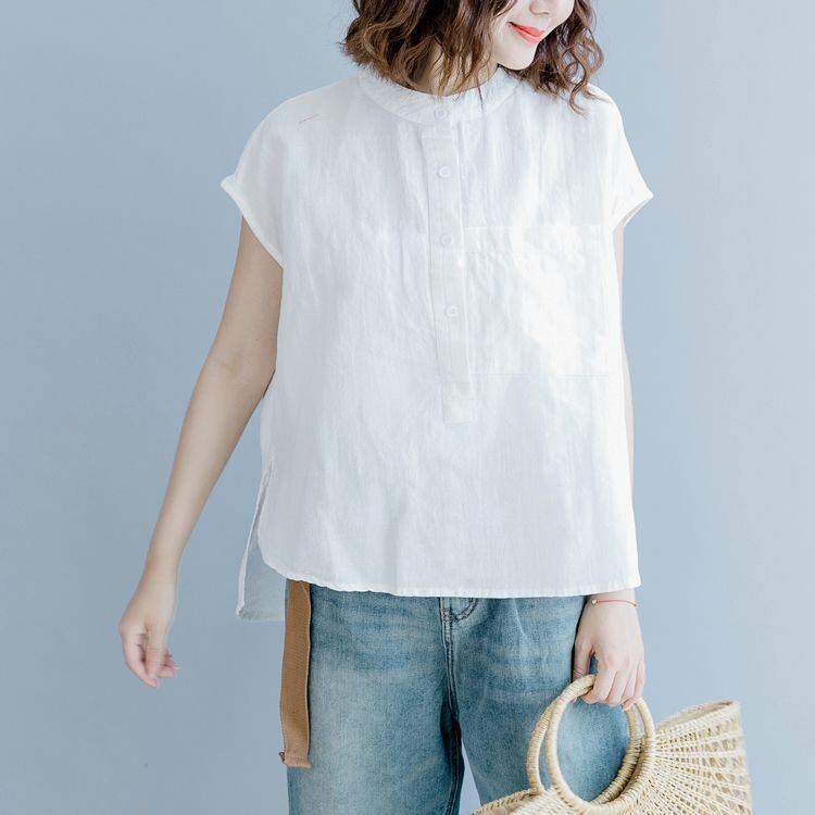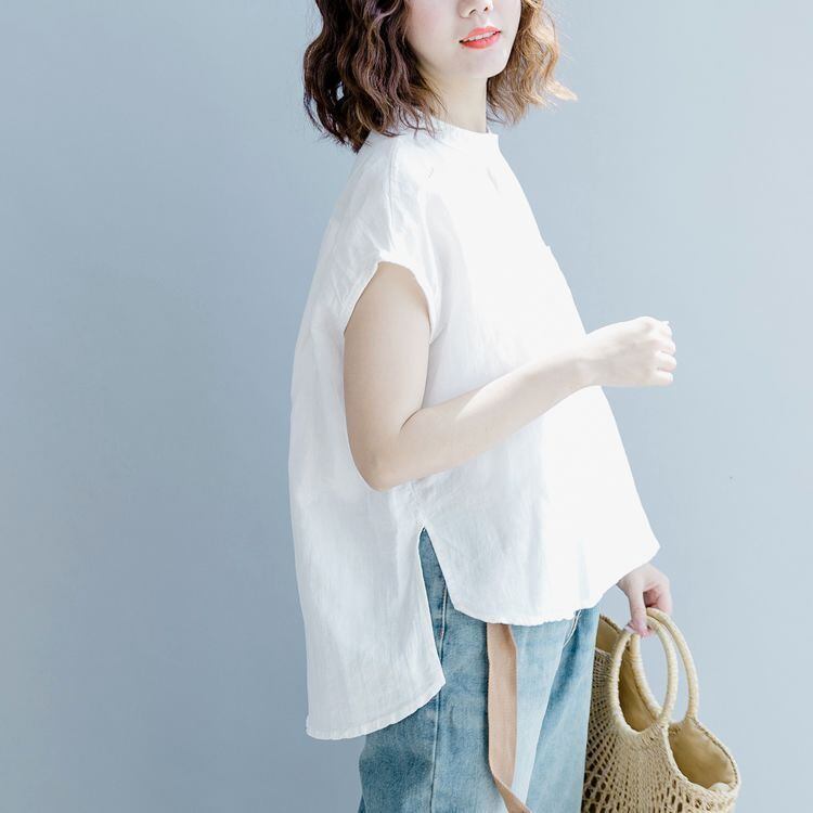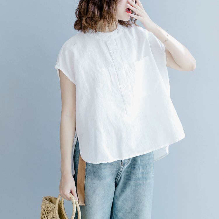 新品 ブラウス リネン シャツ レディース 半袖 夏 サイドスリットブラウス スタンドカラー リネンシャツ トップス 涼しい 薄手 ゆったり 柔らかい 可愛い 大人 シンプル カジュアル ホワイト 白 kkkjan