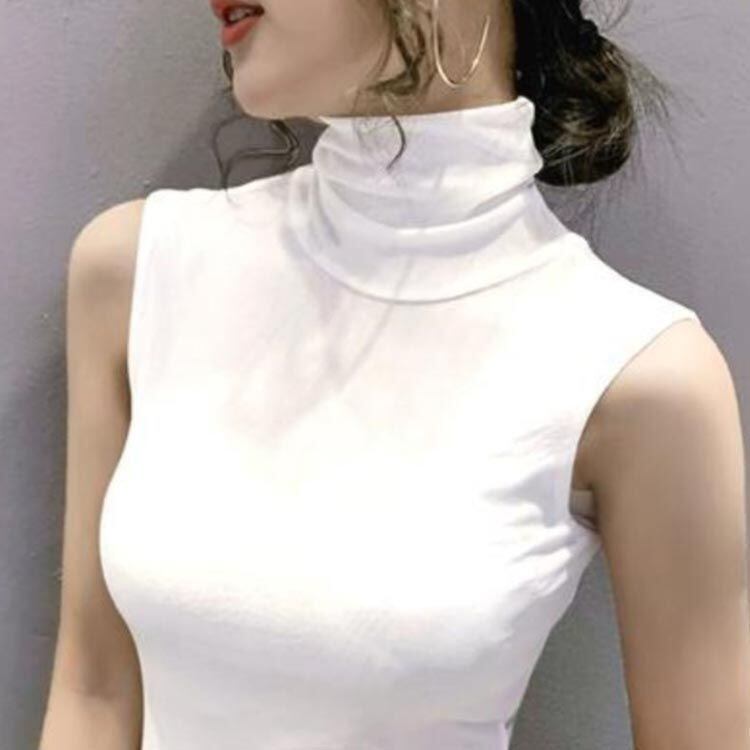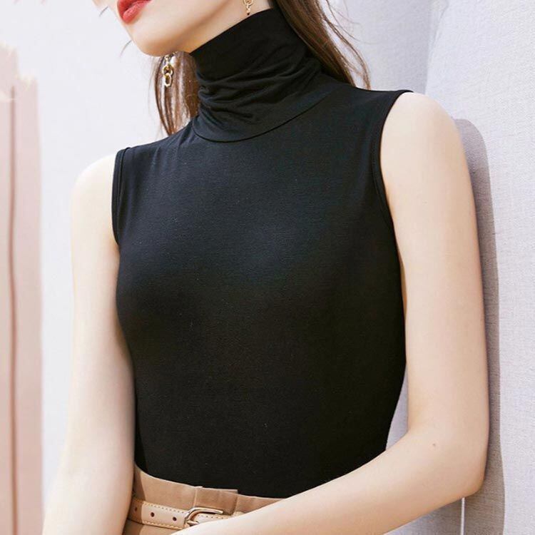 新品 【2枚セット】 ハイネック ノースリーブ タートルネック カットソー レディース 夏 春夏 薄手 ボトルネック モダール ノースリーブ トップス 綿 コットン 春 夏 秋冬インナー kkkqcq