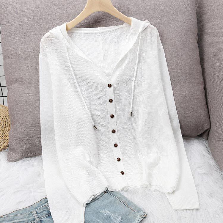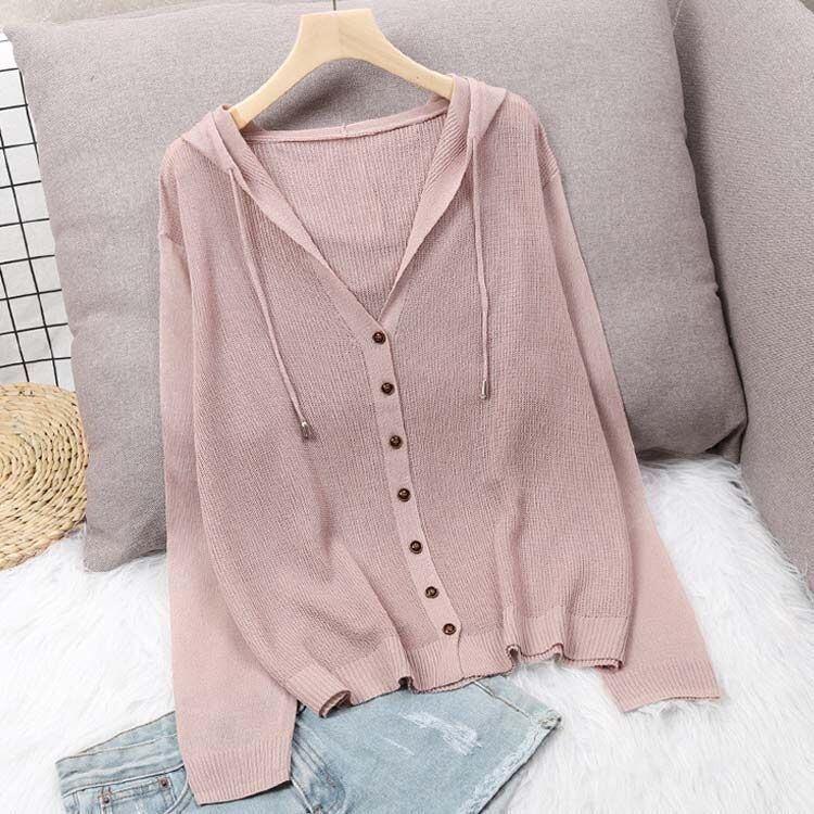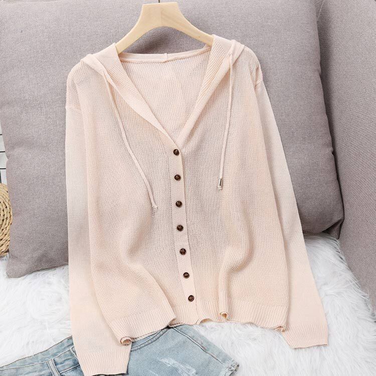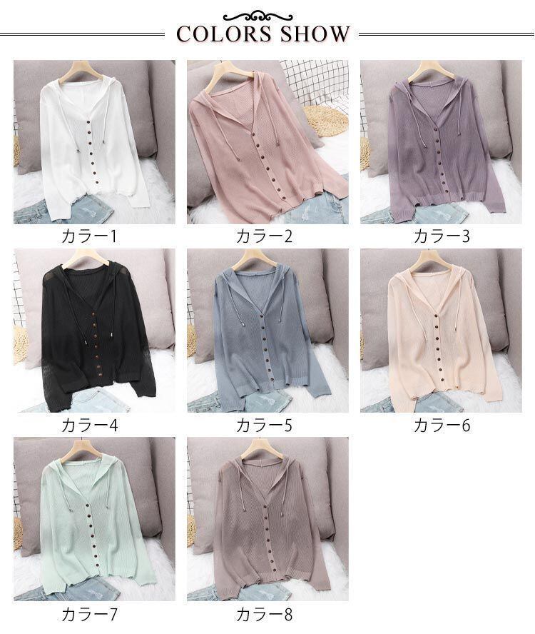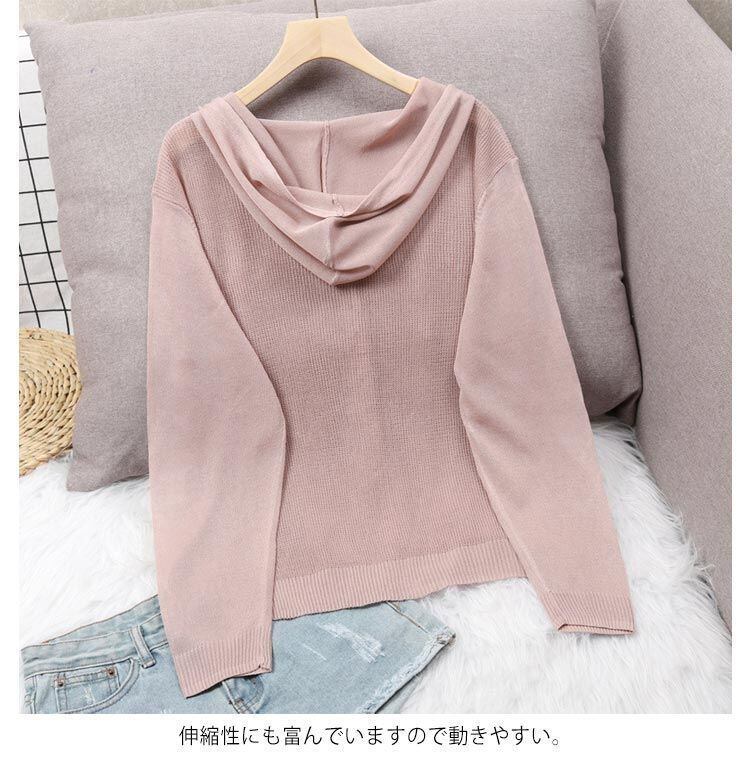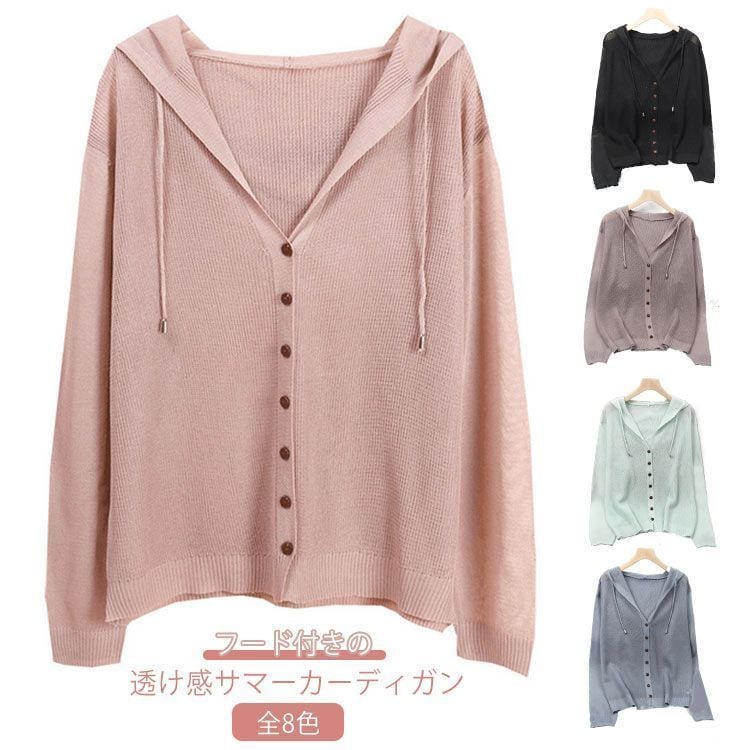 新品 レディース フード付きカーディガン UV フード カーデ サマーカーディガン サマーニット カディガン ニットカーディガン 夏用 薄手 シンプル ニットパーカー 透け感 接触冷感 Vネック 無地 サマ kkknvp