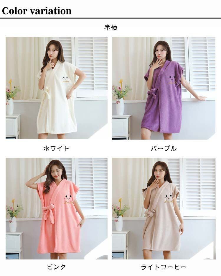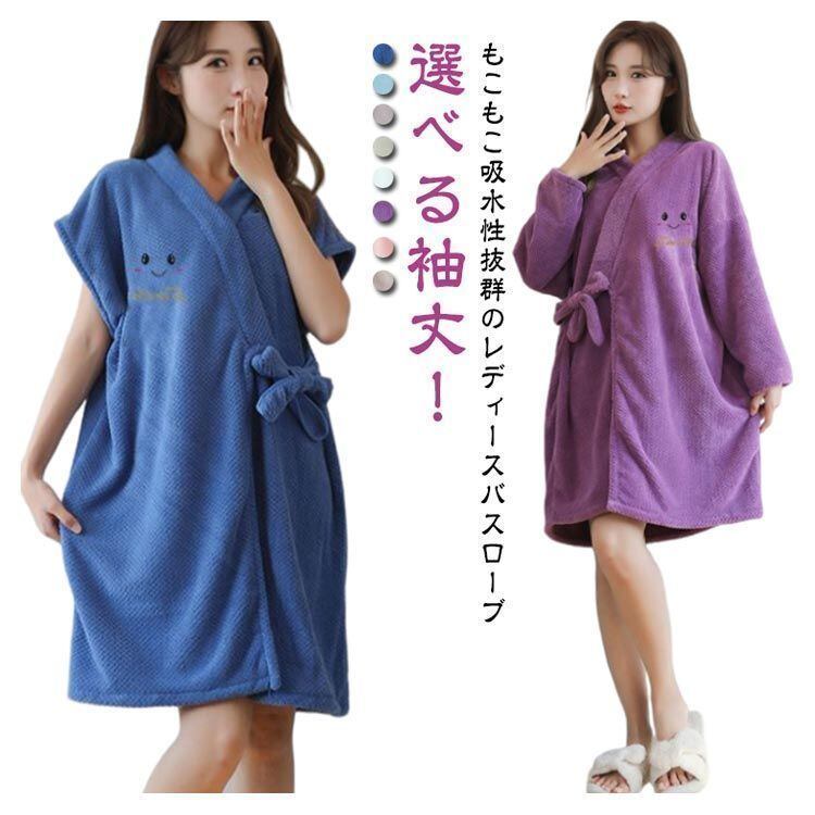 選べる袖丈!もこもこ吸水性抜群のレディースバスローブ