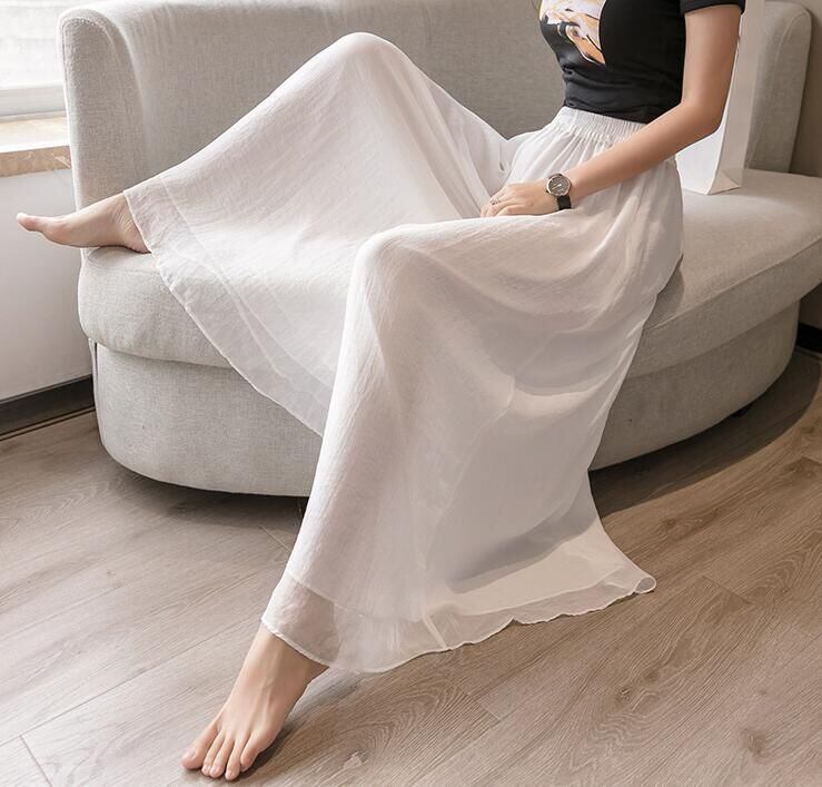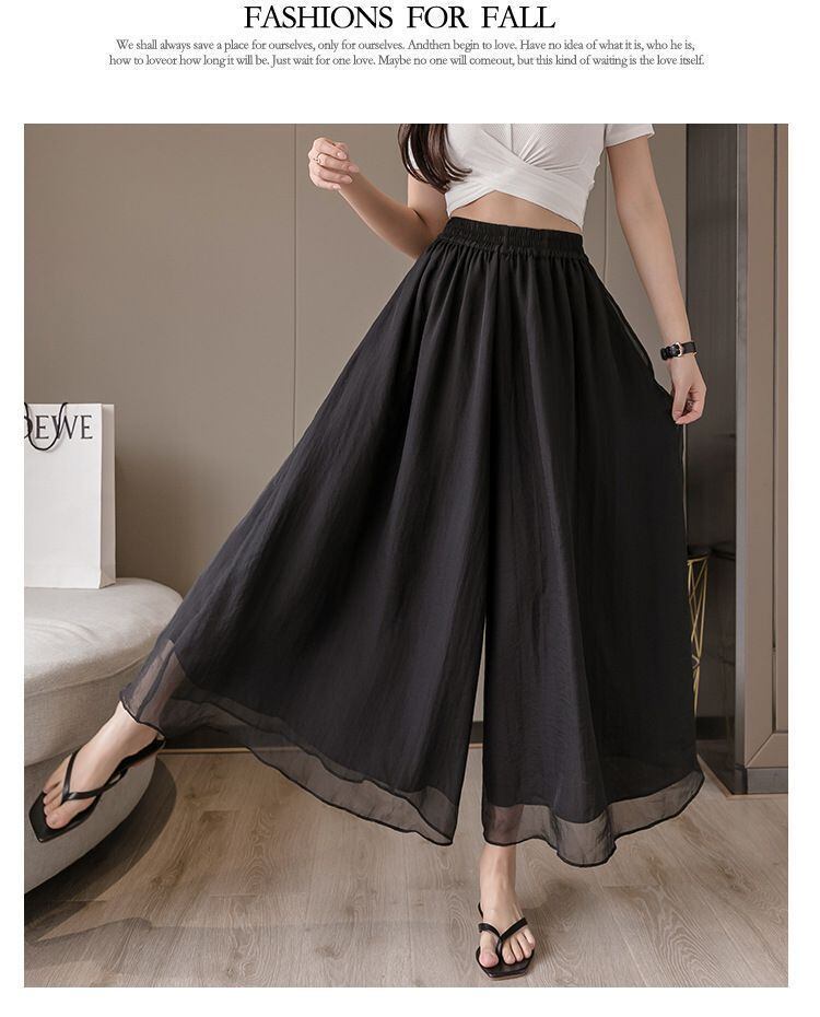 新品 ガウチョパンツ ワイドパンツ レディース シフォン 裾プリーツ リブフレアパンツ ガウチョ パンツ ボトムス スカーチョ ゆったり kkkhqc