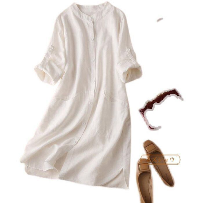 春に新しくリリースされる商品です。デザインには立ち襟とロールアップスリーブが採用されています。素材には、通気性と快適さを提供する綿とリネンが使用されています。ミディアム長さのシャツは、カジュアルながらも上品な印象を与えます。さらに、女性向けにデザインされ、送料は無料です。