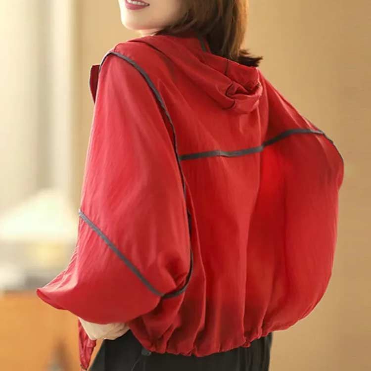 フード付き、顔の日焼け対策もバッチリ!